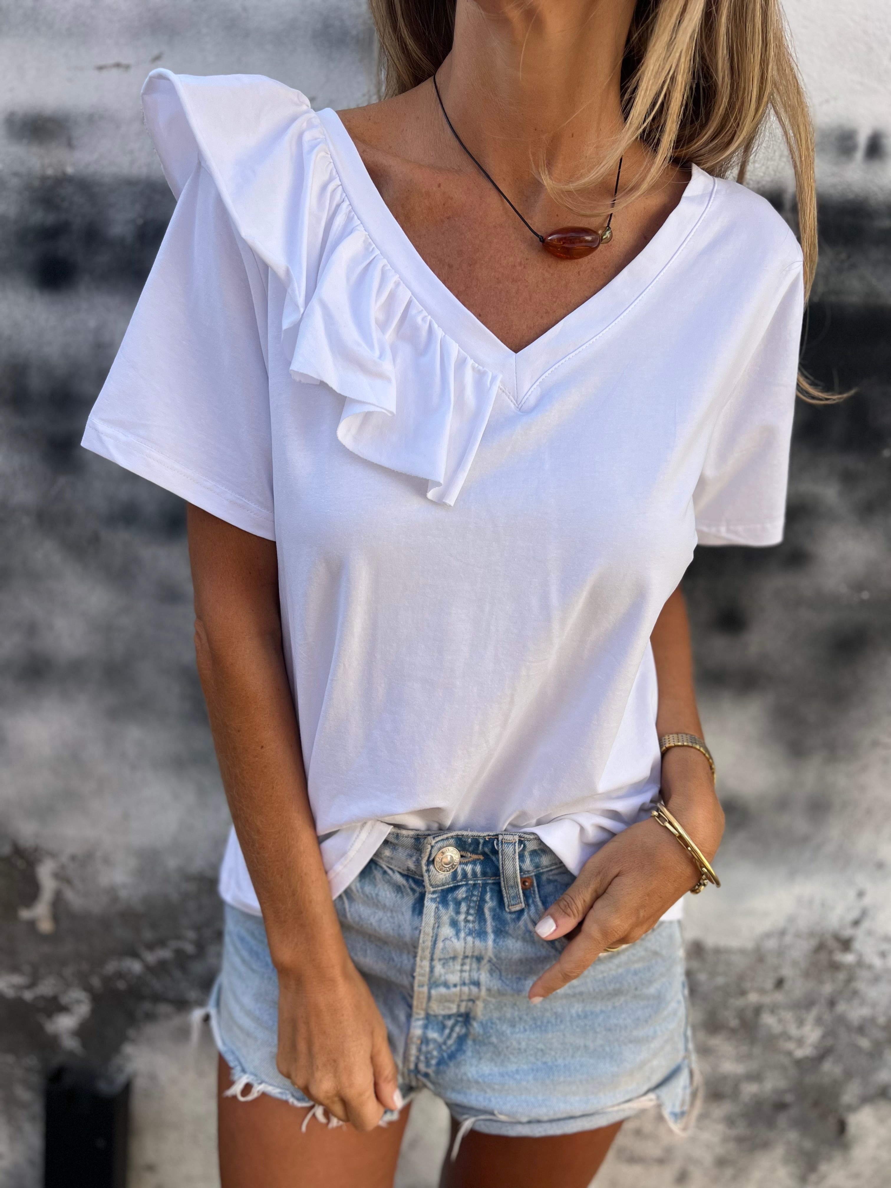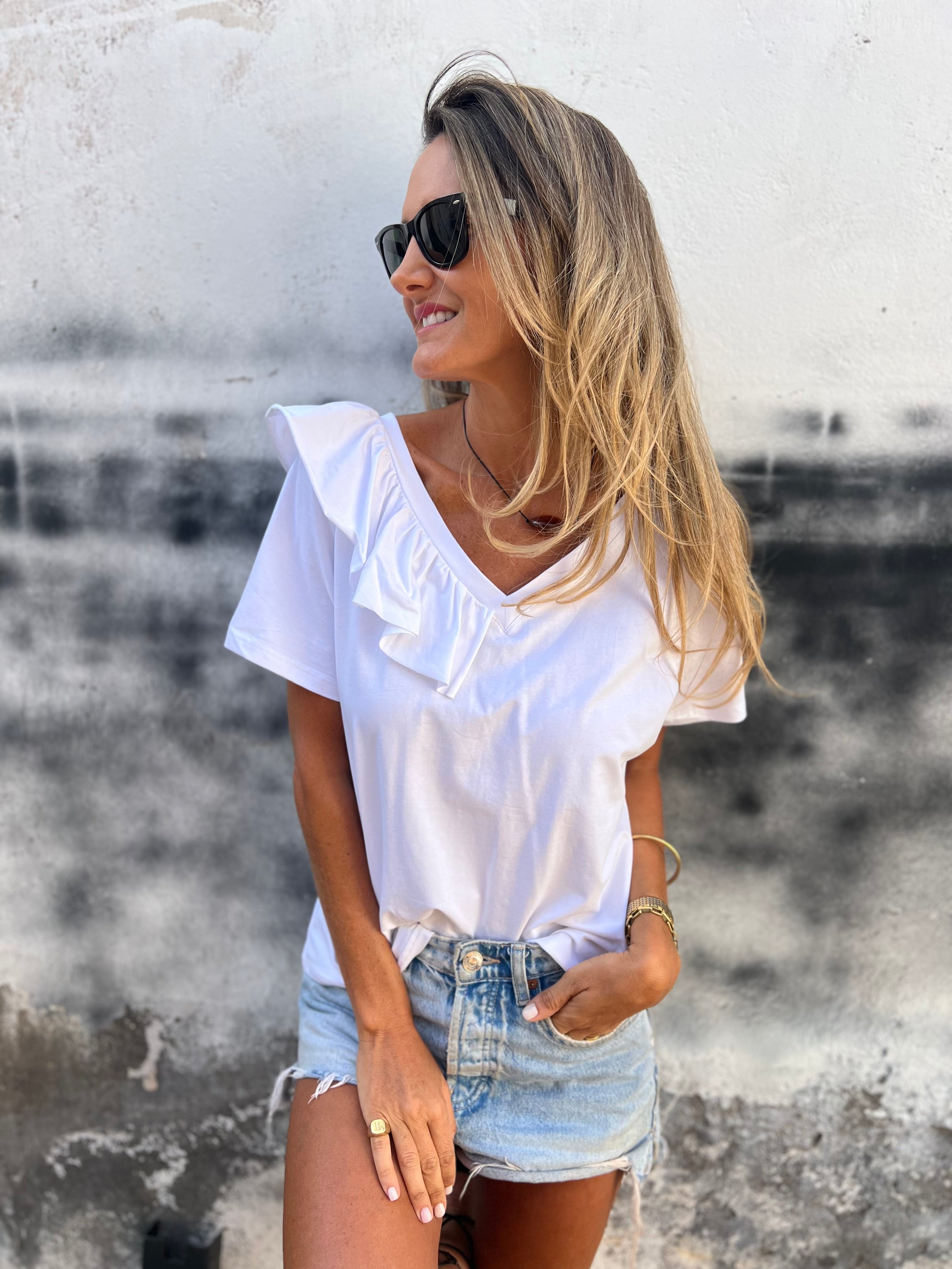 Polera modal 1/2 vuelos blanca