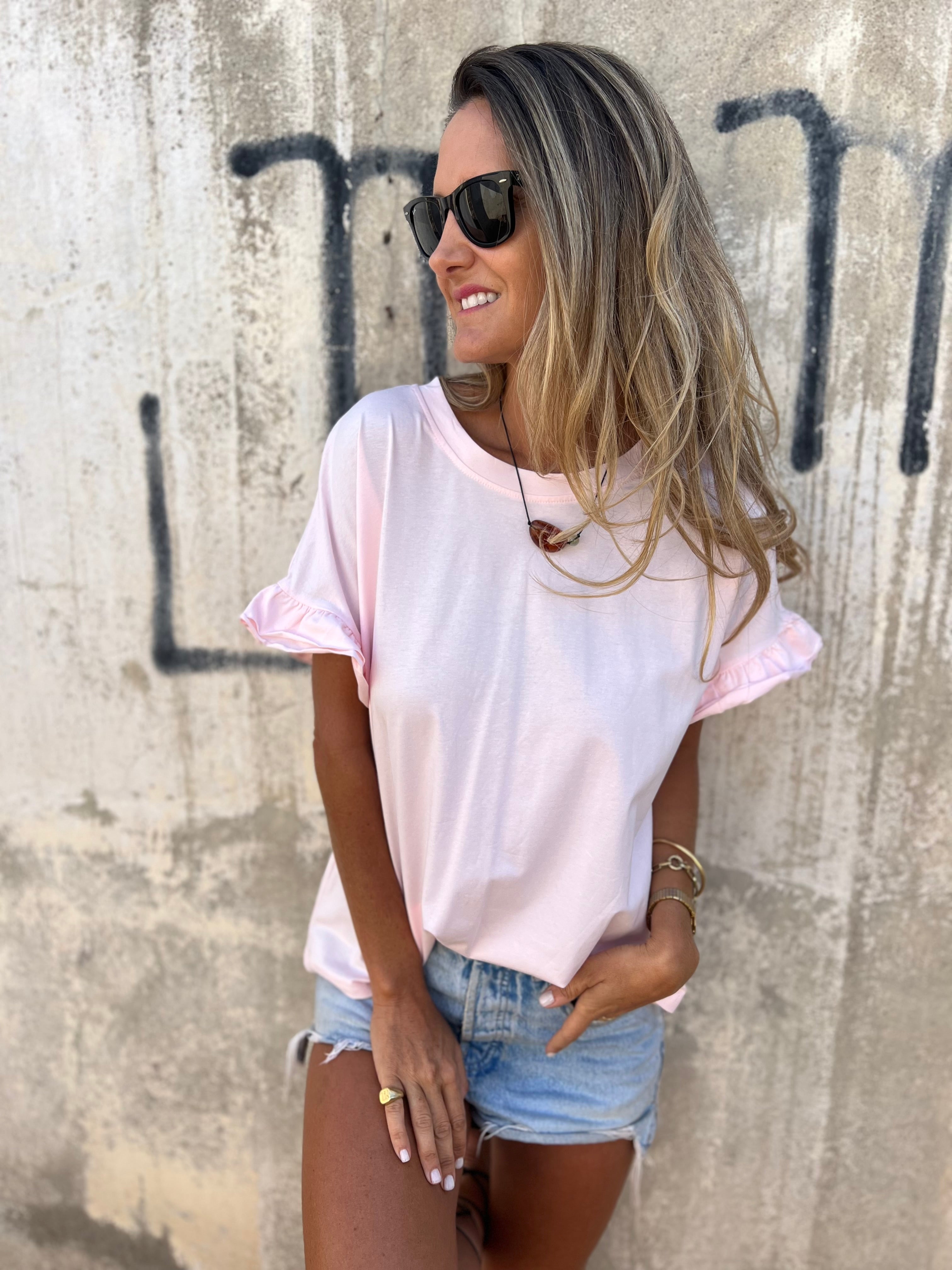 Polera modal 1/2 vuelos rosada