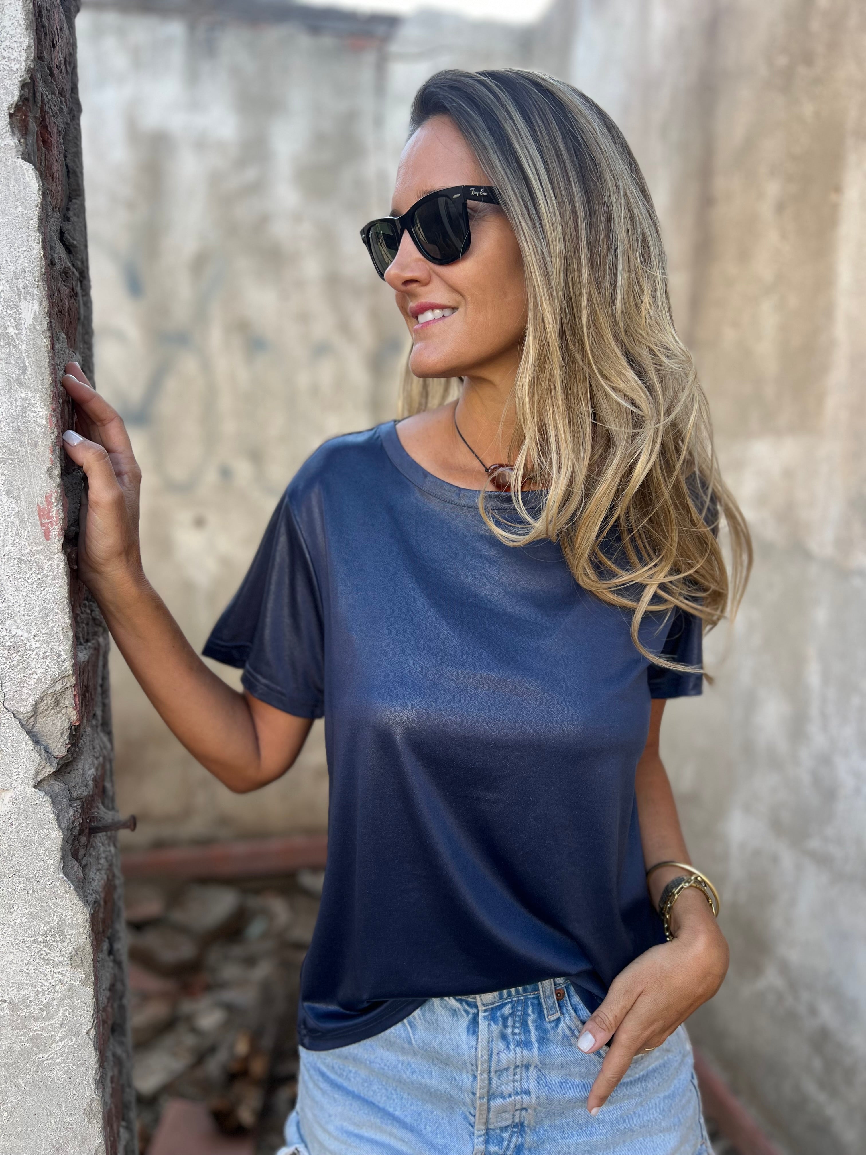 Polera metalizada soft azul