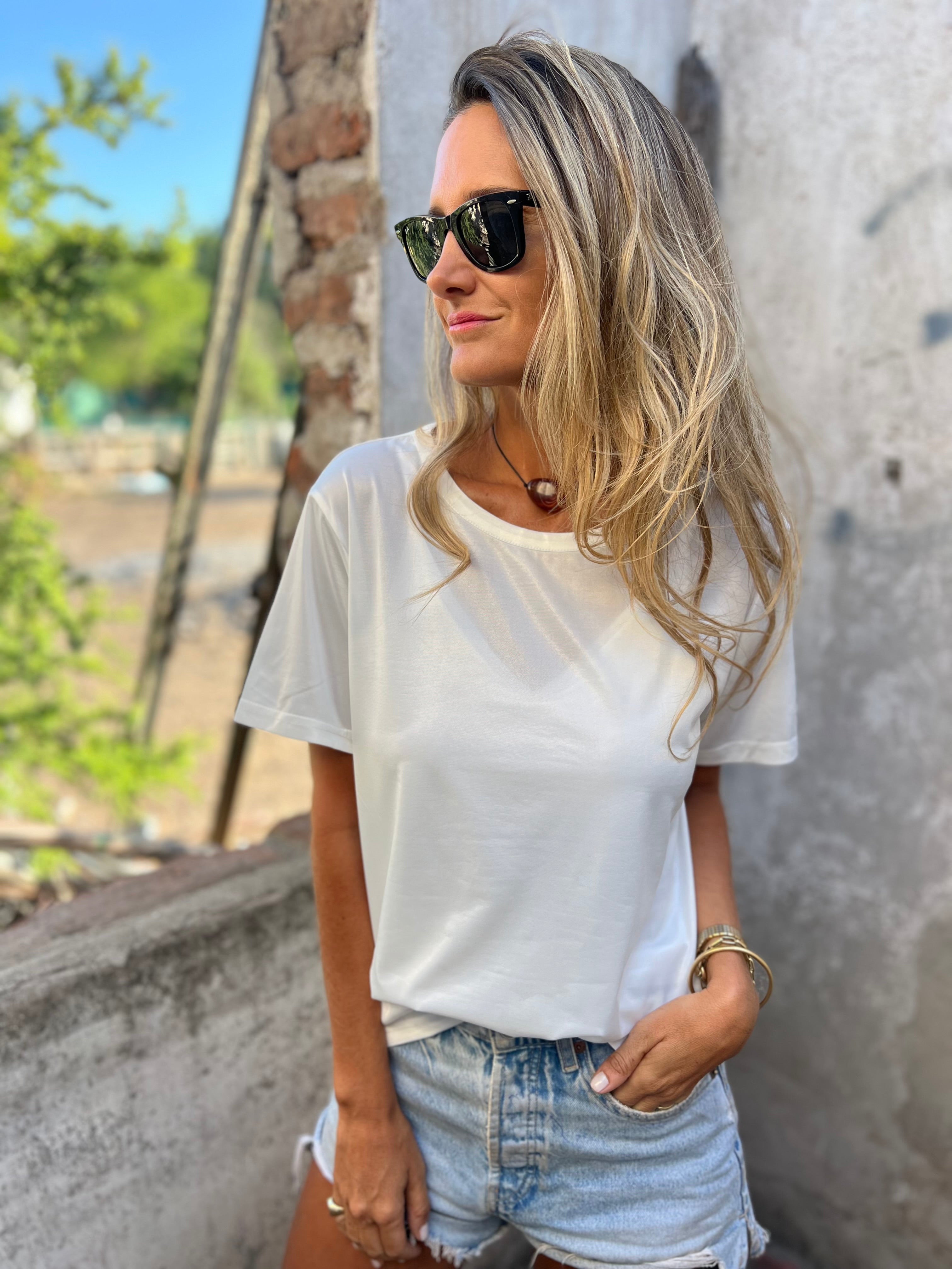 Polera metalizada soft blanca