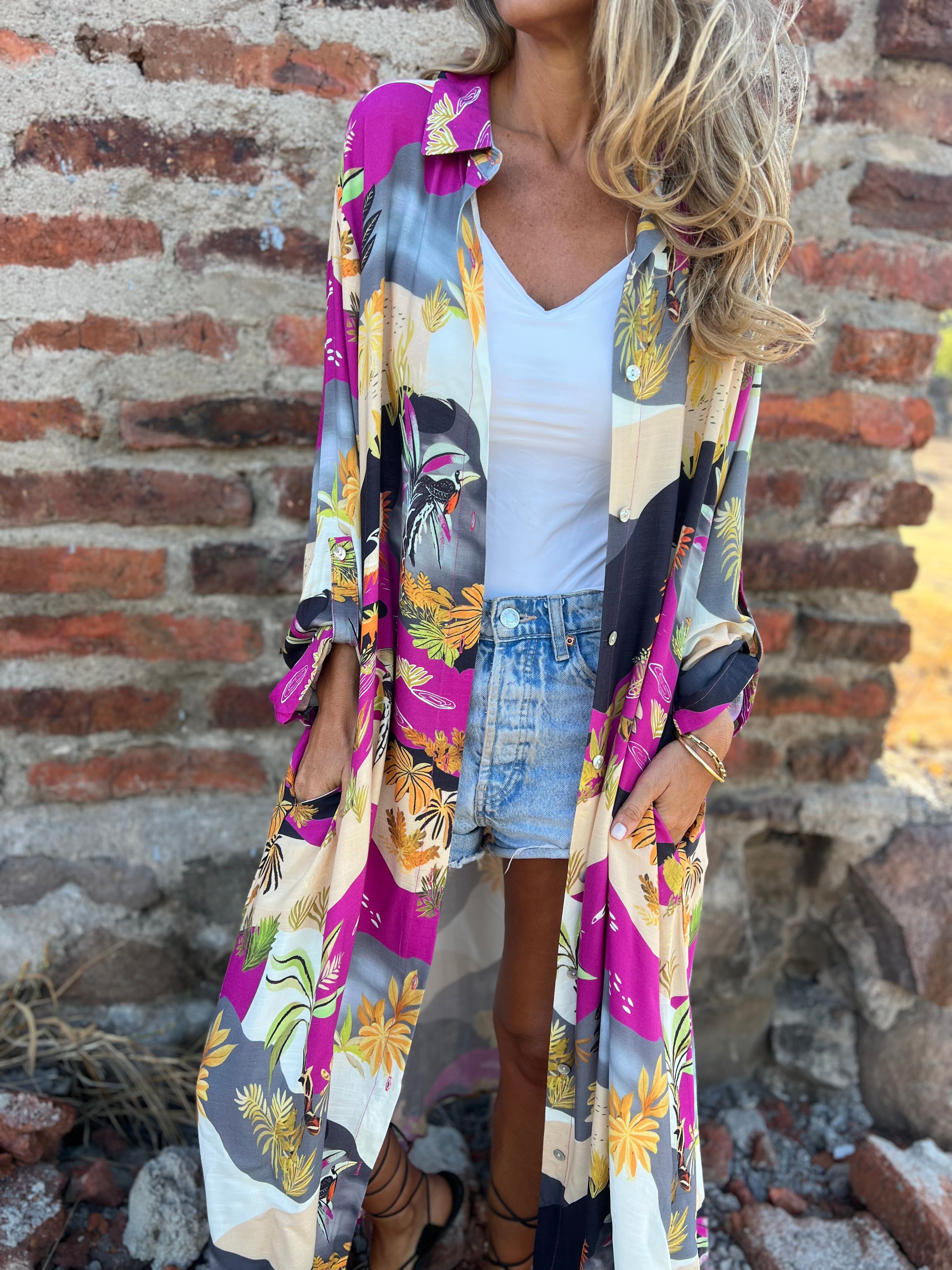 Blusón vestido summer negro fucsia