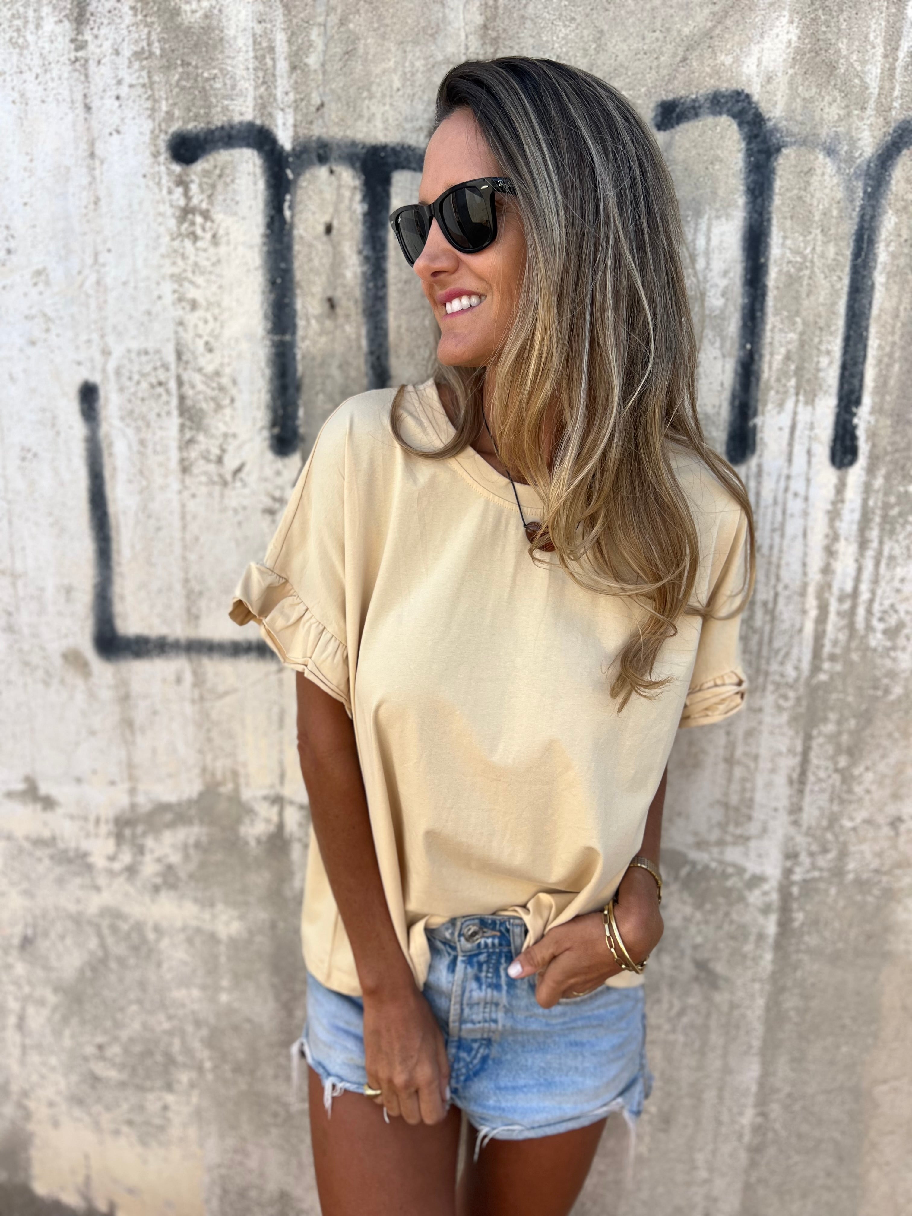 Polera modal 1/2 vuelos beige