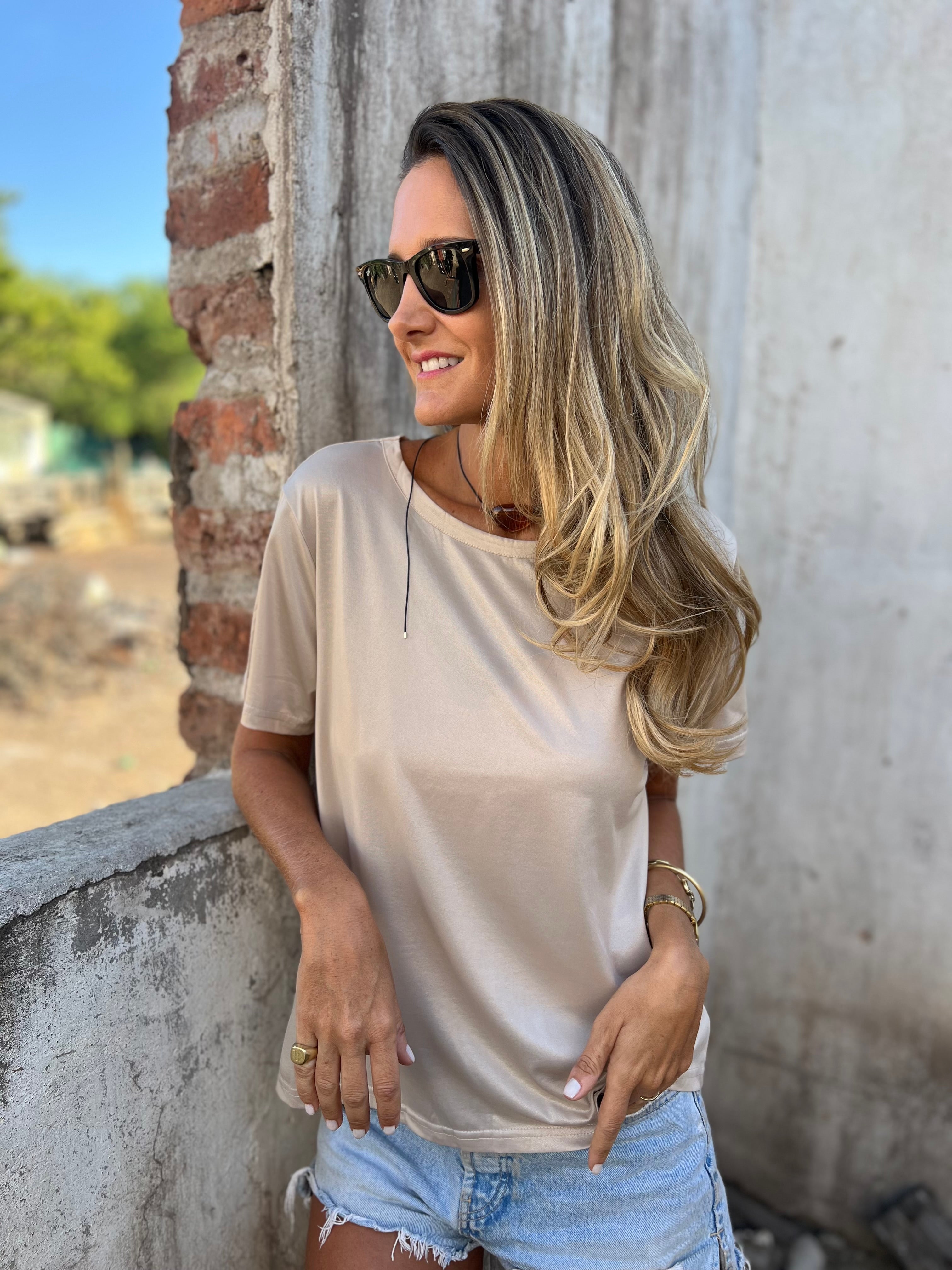 Polera metalizada soft beige