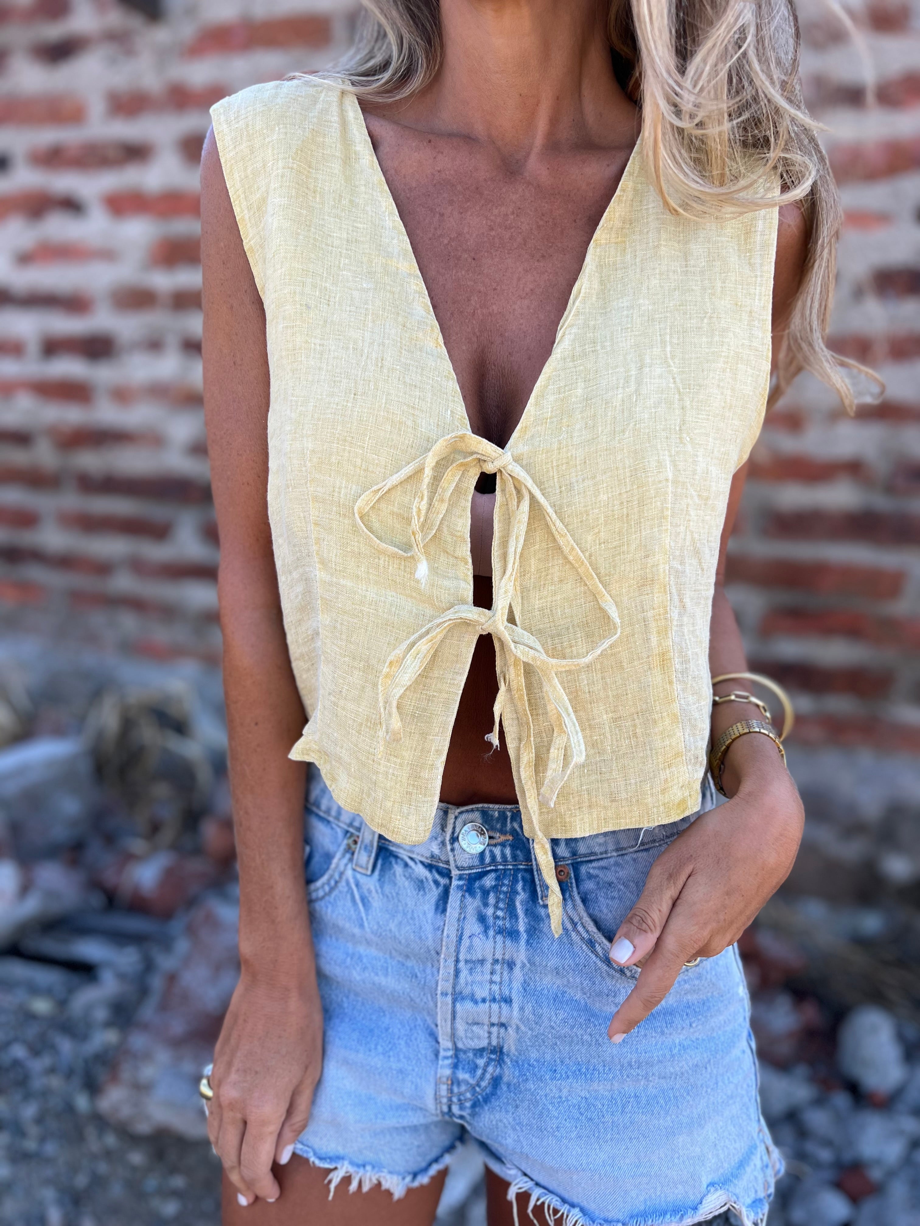 Blusita coquetona 100% lino amarilla
