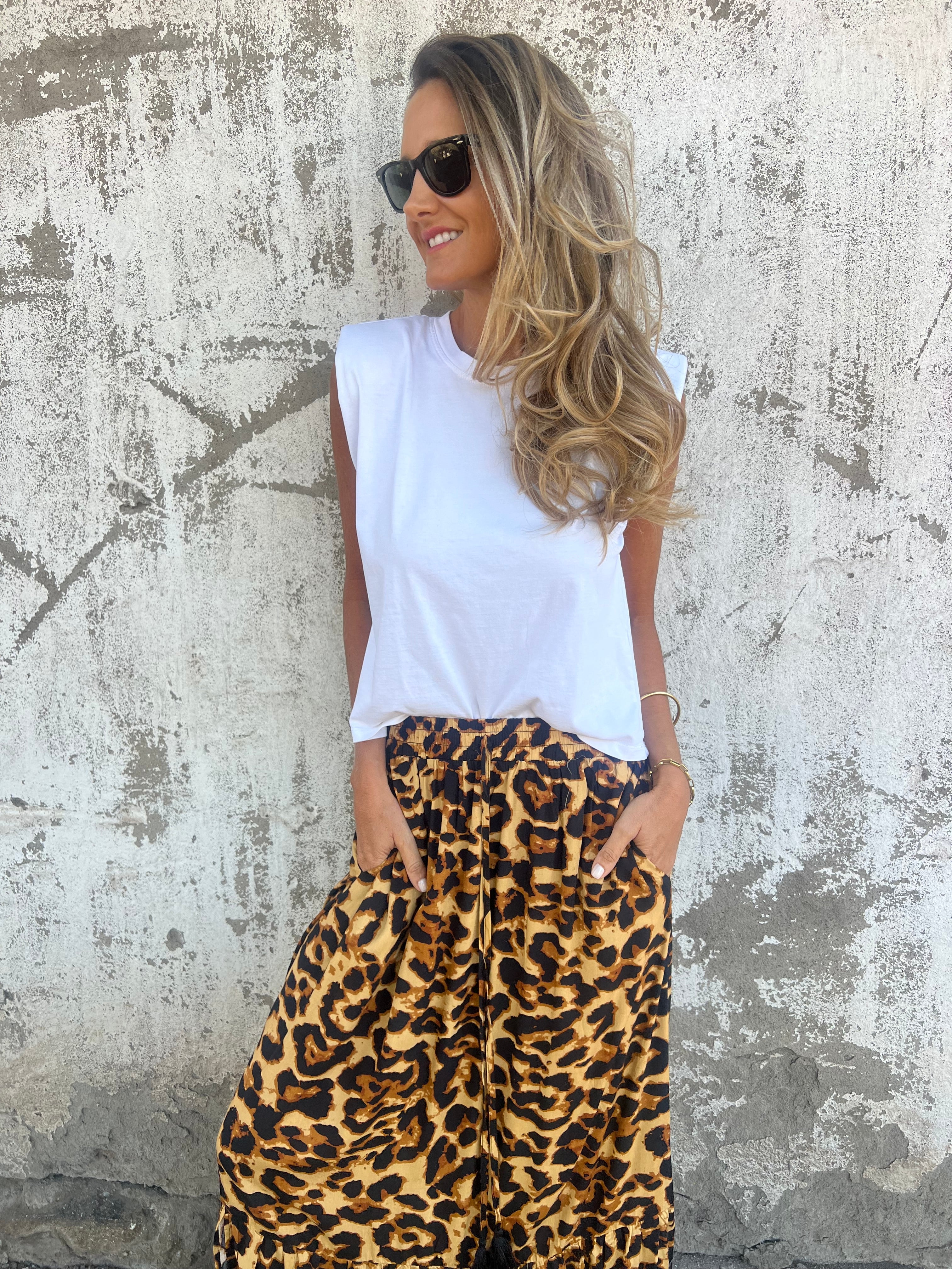 Pollera print large camel
