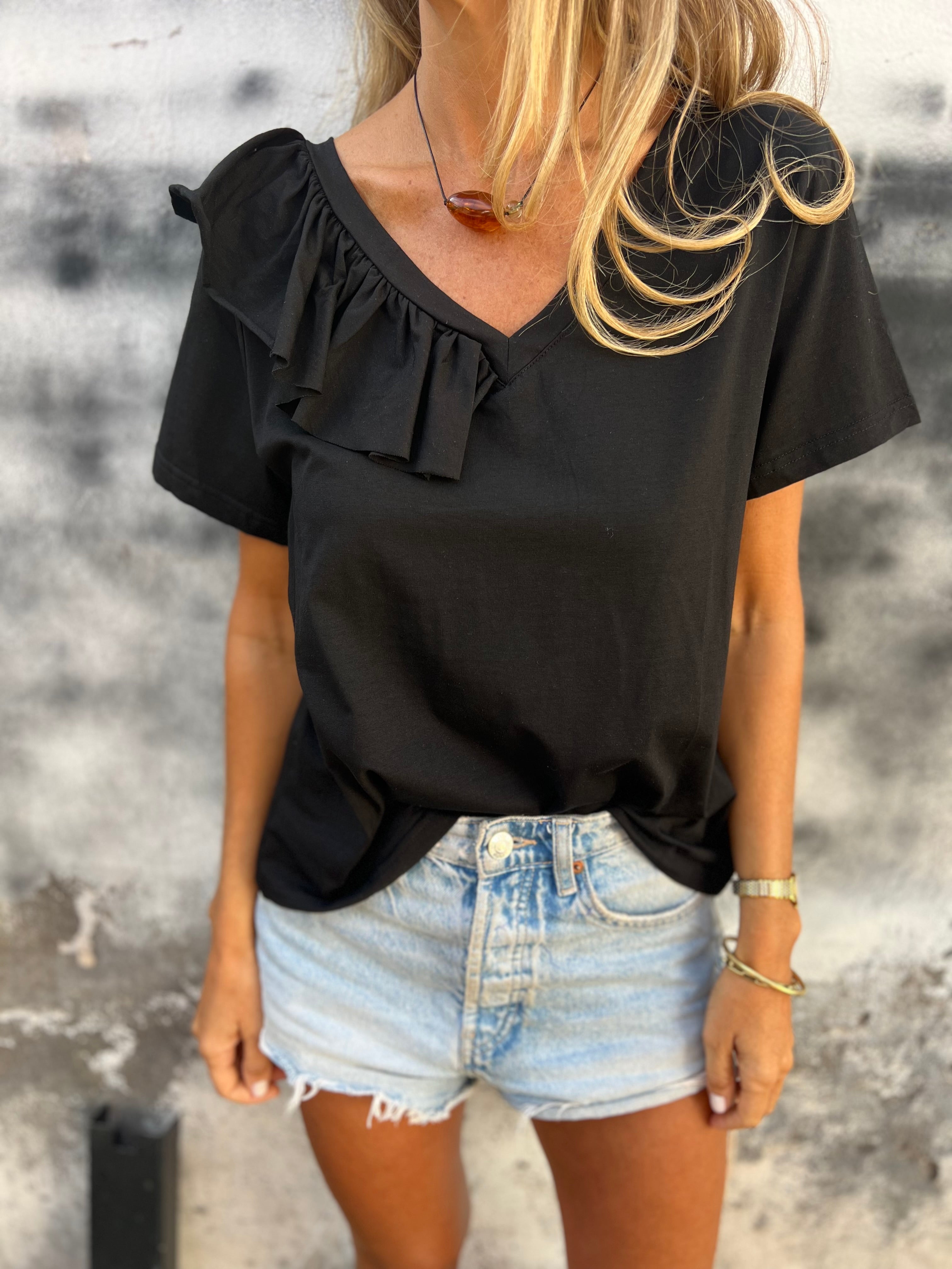 Polera modal 1/2 vuelos negra