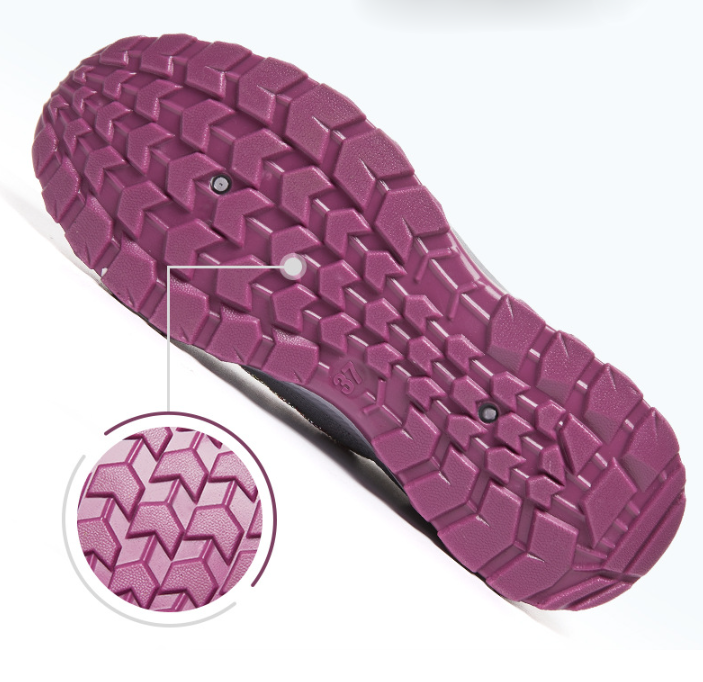 La suela está hecha de material amortiguador cómodo, con patrón inferior cóncavo y convexo antideslizante