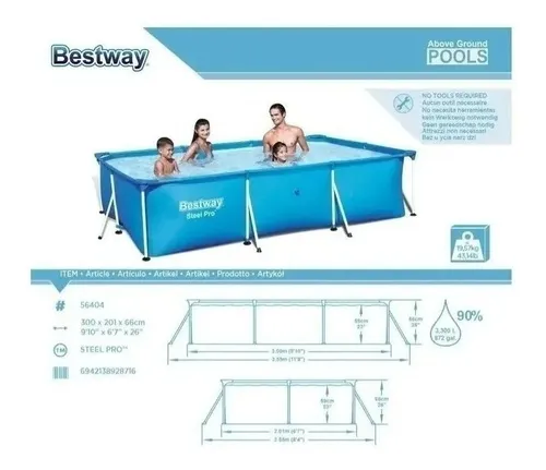 Alberca Rectangular Estructural BestWay de 3.00m x 2.01m x 66cm, capacidad 3,300 litros, Instalación sencilla.