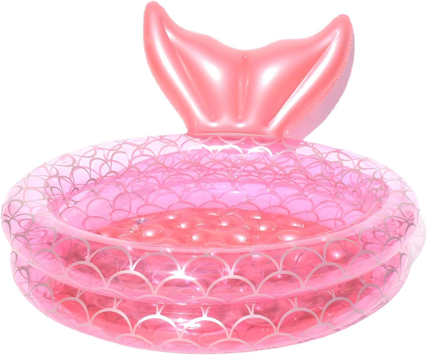 - Hermosa Piscina de Sirena: diseño de estilo sirena, material translúcido, color rojo rosa, lo hizo hermoso. El regalo de verano favorito de las niñas. Es como jugar en un mundo de cuento de hadas.