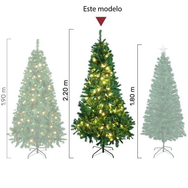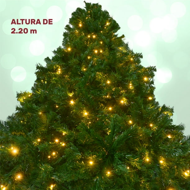 - LUJOSO Y MODERNO. Árbol de navidad de 220 cm de altura. Simula un aspecto natural dándole ese toque navideño a tu hogar. Cuenta con 1104 puntas para distribuir, peinar y organizar a tu propio gusto, de esta manera, lograras un árbol voluminoso y moderno.