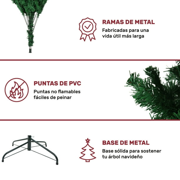 - PATAS DE ACERO. El arbolito de navidad cuenta con patas de acero con 4 puntos de anclaje para una máxima estabilidad. Su estructura del pino permite colocarle adornos navideños (no incluidos) por todas las puntas del árbol navideño.
