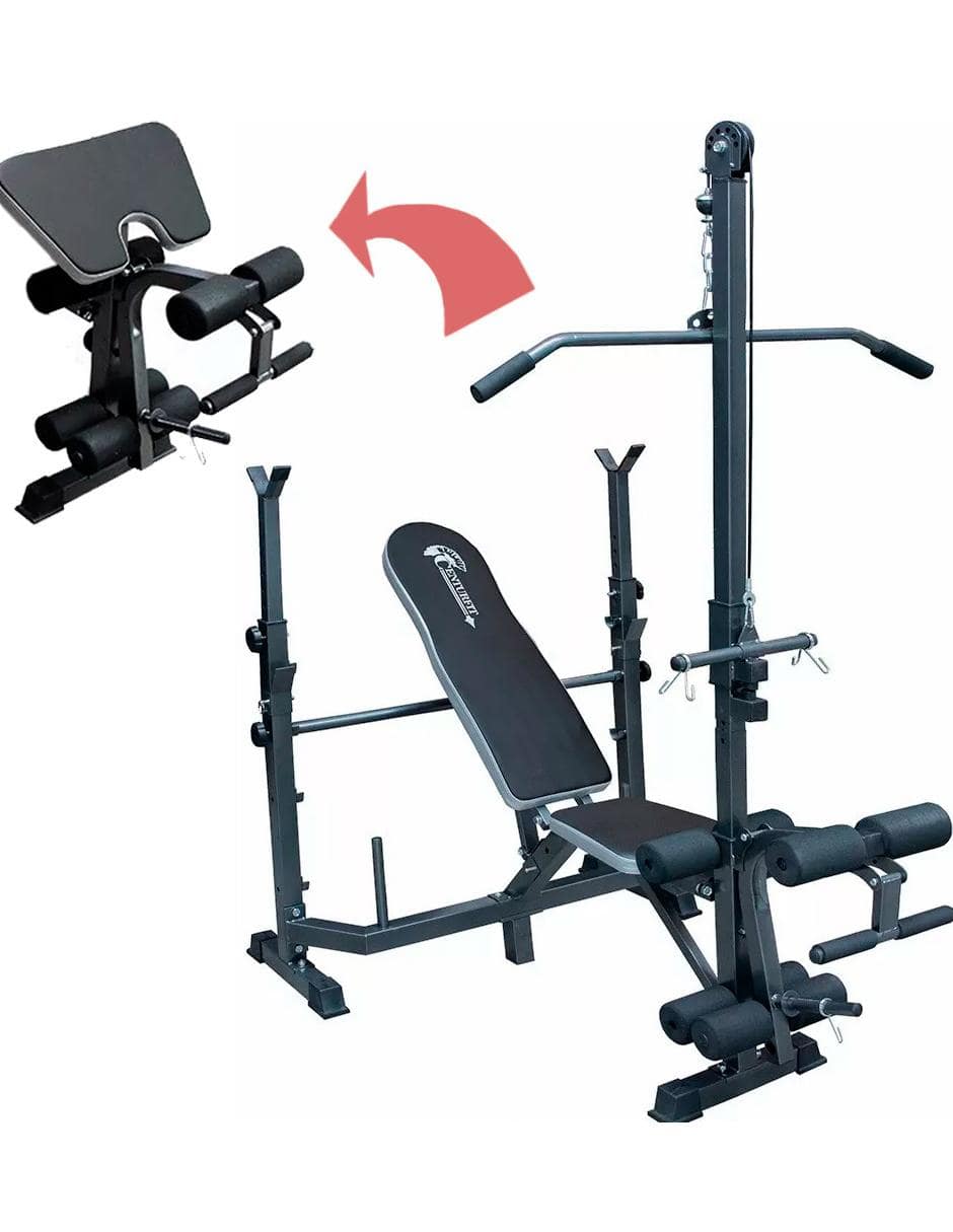 ¿QUÉ INCLUYE? Un banco para pesas y barra para asiento ajustable. MEDIDAS DEL PRODUCTO ARMADO Alto: 105 cm. Ancho: 67 cm. Largo: 137 cm. ESPECIFICACIONES TÉCNICAS Estructura de metal. Asientos acolchados con acabado en vinipiel. Rodillos forrados de espuma.