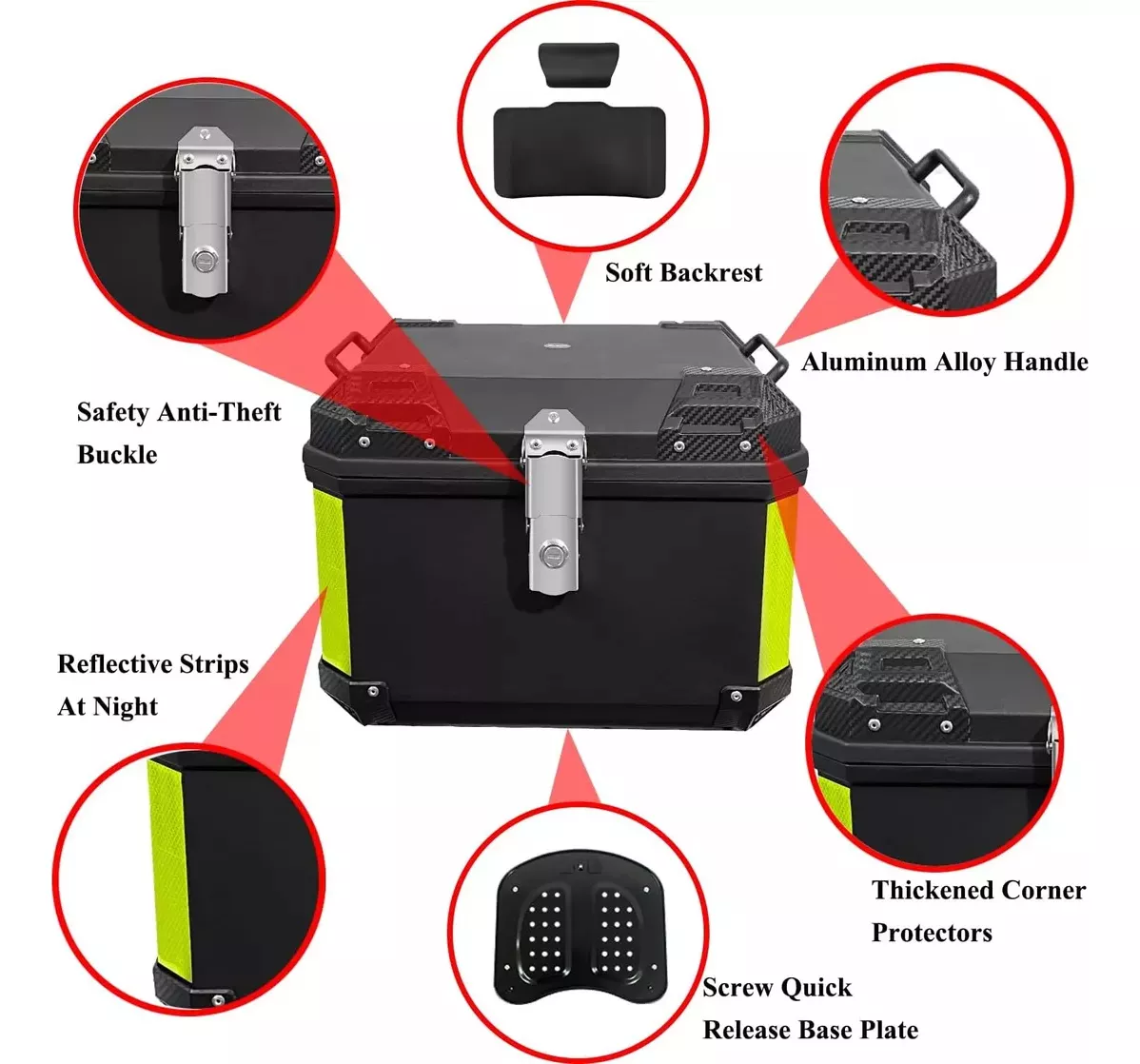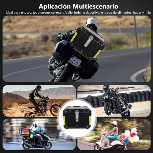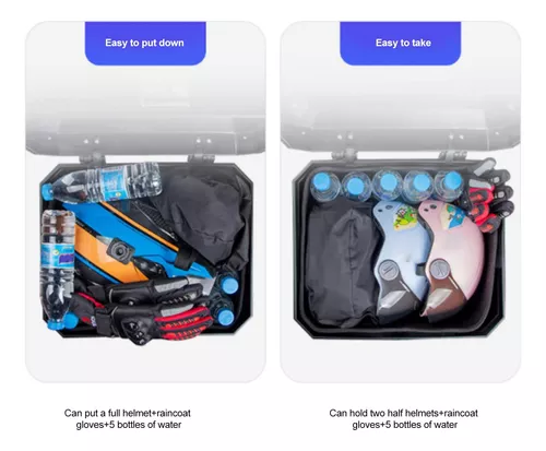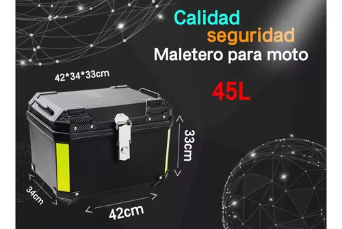 Caja segura:Deja con toda tranquilidad tus pertenencias y casco en el maletero para motocicleta sin preocuparte por manos ajenas accediendo a tu caja para moto, este accesorios para motocicleta incluye dos llaves para el cierre seguro y confiable del maletero ya sea durante el viaje o mientras no estás