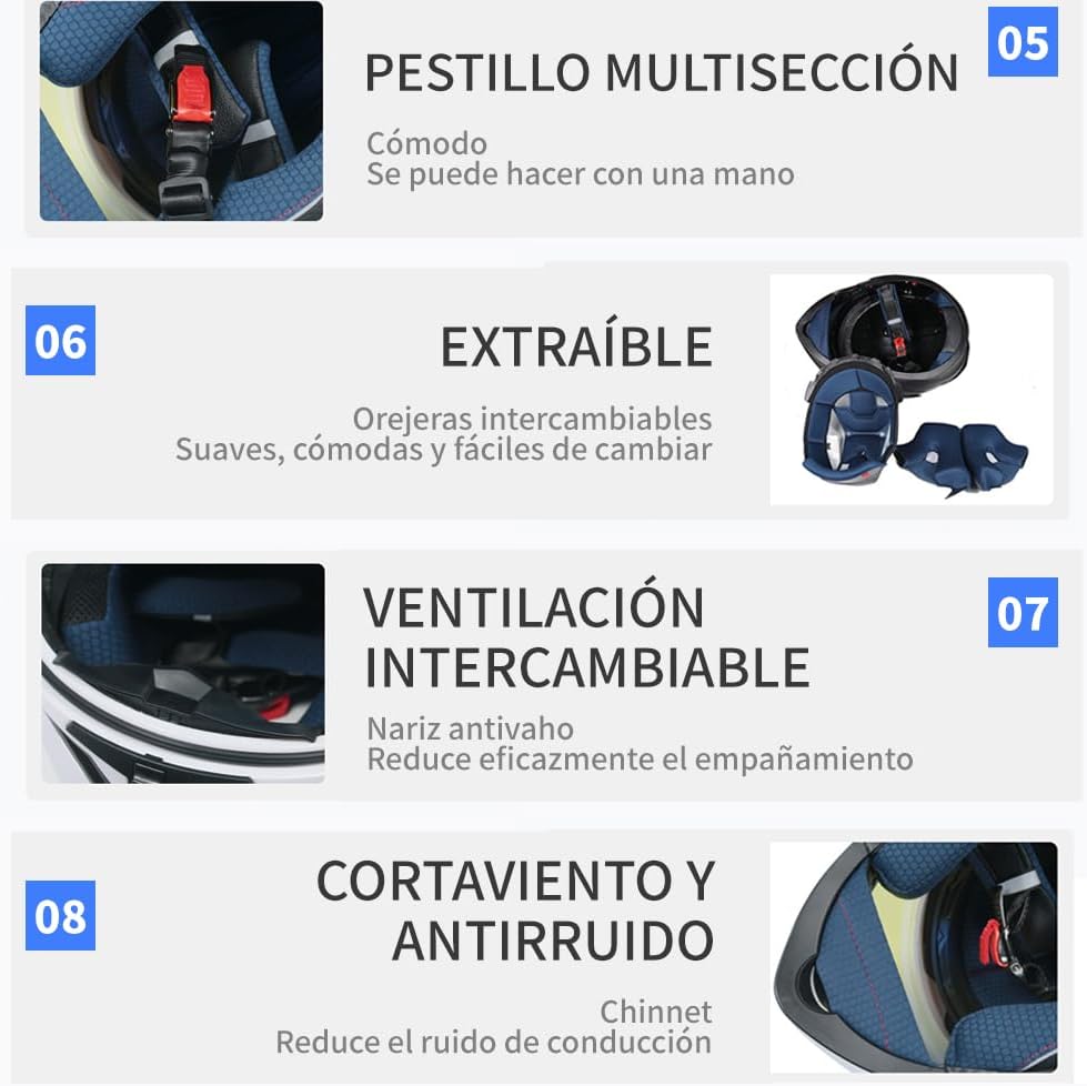 - Tecnología Avanzada con Auriculares Bluetooth: Equipado con auriculares Bluetooth de alta calidad, este casco viene con todos los accesorios necesarios para una conectividad perfecta. Disfruta de tus canciones favoritas o mantente conectado en la carretera sin comprometer la seguridad.