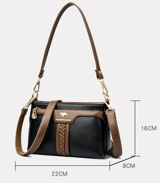 Las correas de los hombros están reforzadas con herrajes texturizados y se pueden sacar suavemente y ajustar a voluntad según las necesidades personales.