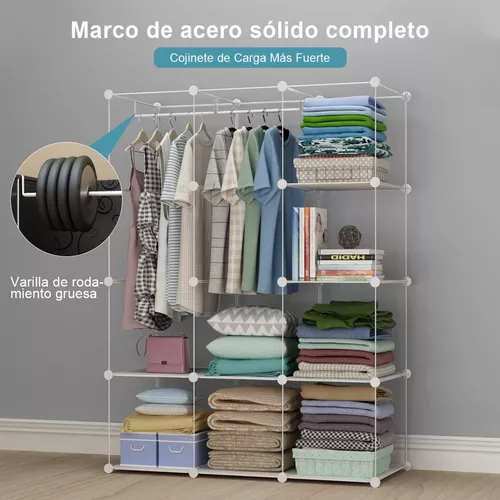 Nuestro armario está hecho de un marco de acero resistente y un panel grueso para permitir una estructura estable y prolongar la vida útil. Cada cubo puede sostener hasta 10KG, resistente para sostener la ropa o cualquier otra cosa.
