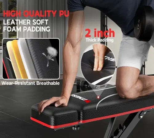 【𝗛𝗶𝗴𝗵 𝗤𝘂𝗮𝗹𝗶𝘁𝘆 𝗕𝗲𝗻𝗰𝗵】Fabricado con acero mejorado y materiales de alta calidad, este banco de pesas se somete a rigurosas pruebas de calidad para soportar entrenamientos de alta intensidad, con una capacidad de peso de hasta 800 lb.
