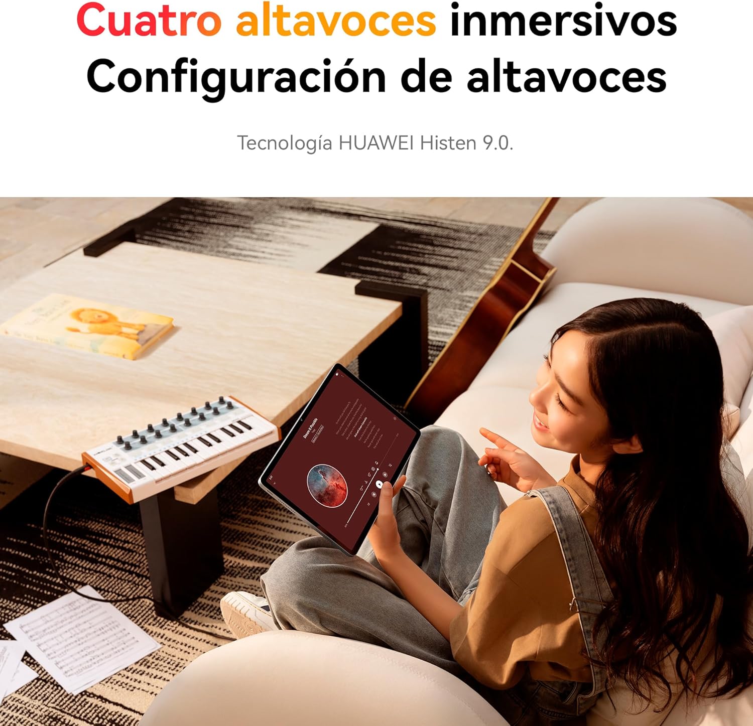 - 【Sonido impresionante afinado por Histen 9.0】Con un sistema de cuatro altavoces simétrico sintonizado por la tecnología HUAWEI Histen 9.0, la tablet se adapta a diversas necesidades, ya sea streaming de música y películas, juegos o clases en línea, ofreciendo un rendimiento general de audio personalizado y constante, adaptado a los deseos del usuario.