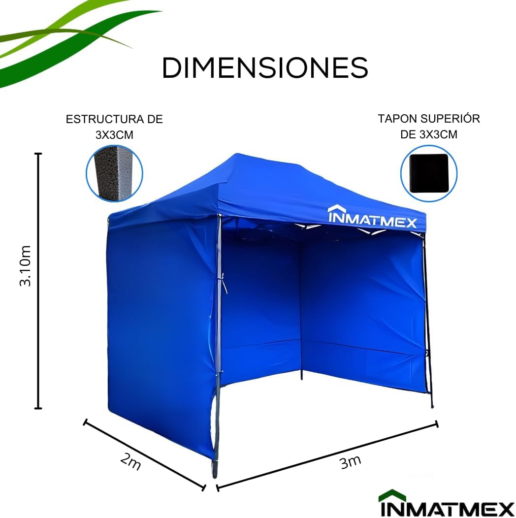 - Carpa, lona toldo 2x3 azul, con paredes, la carpa está fabricada con un tratamiento de impermeabilidad y protección rayos UV, lo que la hace ideal para eventos al aire libre como en jardín