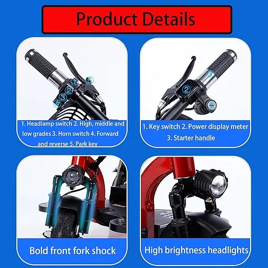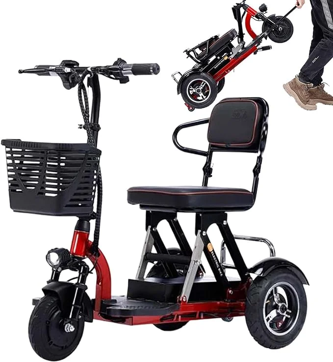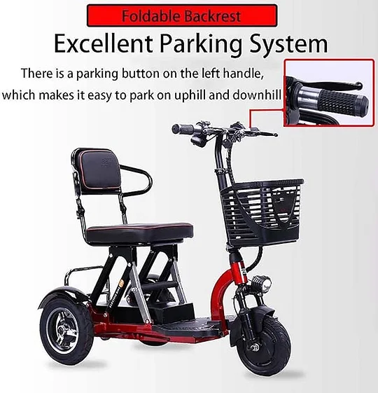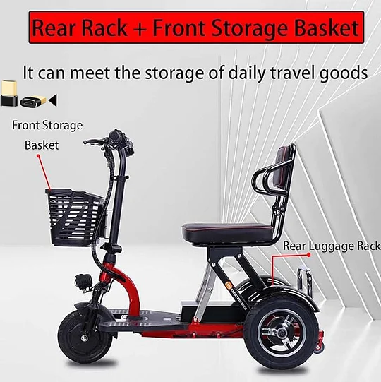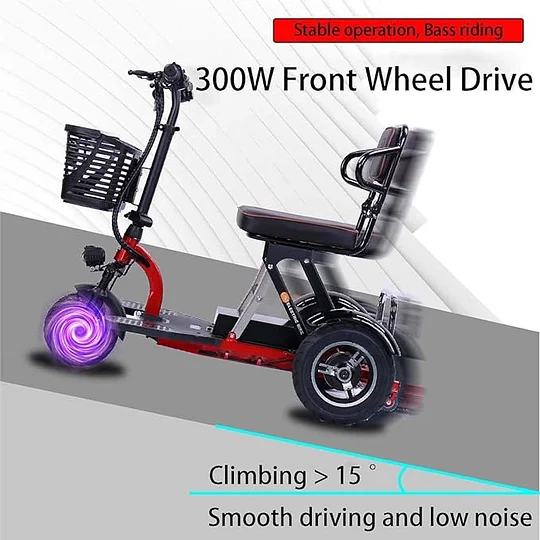 - 【Scooters de movilidad eléctrica plegables】Este es un scooter de movilidad de 3 ruedas inteligente y ligero. Esta estructura de diseño de 3 ruedas es estable y adecuada para todos los grupos de edad. El scooter de movilidad eléctrico ligero y plegable está equipado con tecnología de motor de silla de ruedas sin escobillas.