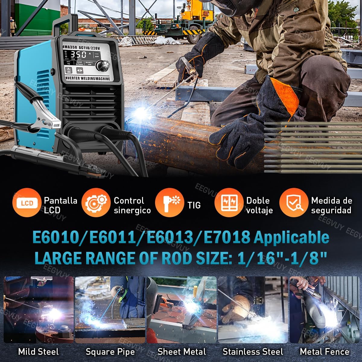 - [Máquina de soldar 2 en 1 recientemente mejorada 2024] La soldadora inverter ofrece 2 procesos: MMA/Lift TIG para satisfacer sus diferentes necesidades hasta 350 amperios y está diseñada para operación de voltaje dual, compatible con entrada de 110 V y 220 V y con una función sinérgica que combina automáticamente el grosor de la pieza de trabajo y el tamaño de las varillas ajustando la corriente de soldadura. Nuestra soldadora de varilla es perfecta para proyectos de bricolaje, reparaciones del hogar, trabajos agrícolas, aplicaciones automotrices y sitios de construcción.