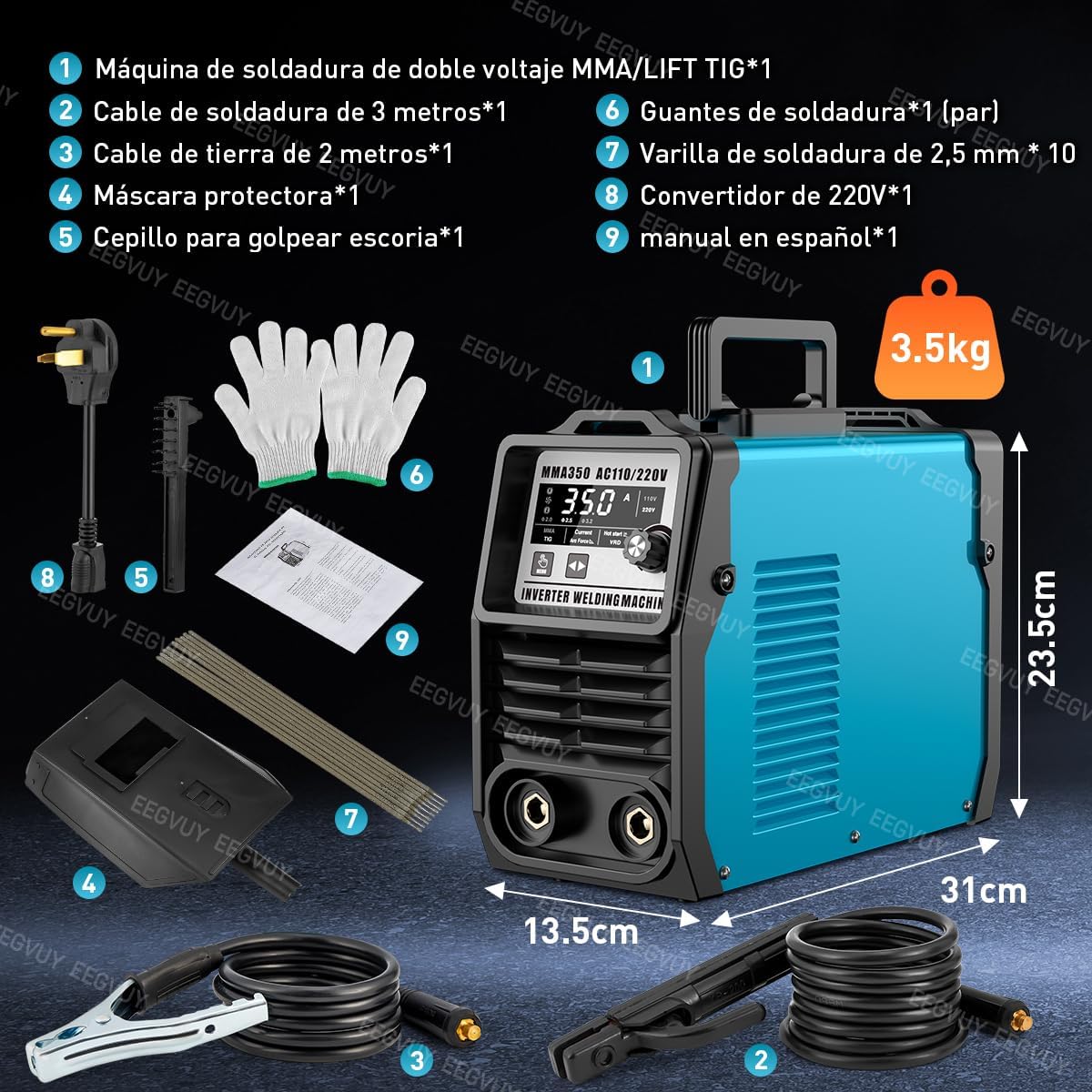 Modelo:Soldadora Inverter Mma+tig 350a Máquina De Soldar 110v/220v (pantalla digital)