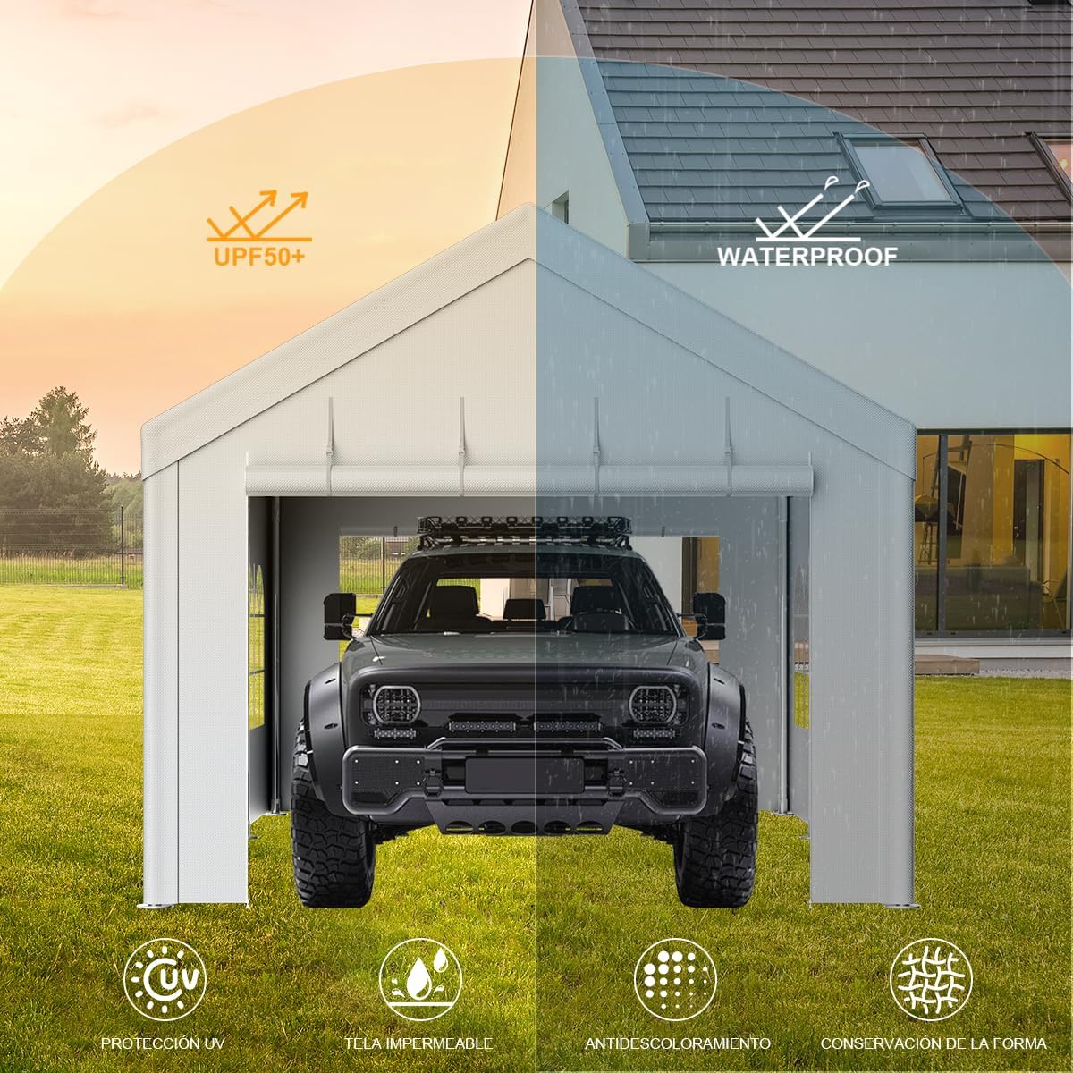 - 【Materiales mejorados】 Nuestro dosel de 10x10 está hecho de tela recubierta de poliéster, que es impermeable y puede bloquear efectivamente el 99% de los rayos UV. Puedes pasar una tarde adentro sin temor a la exposición al sol, el viento y la lluvia.