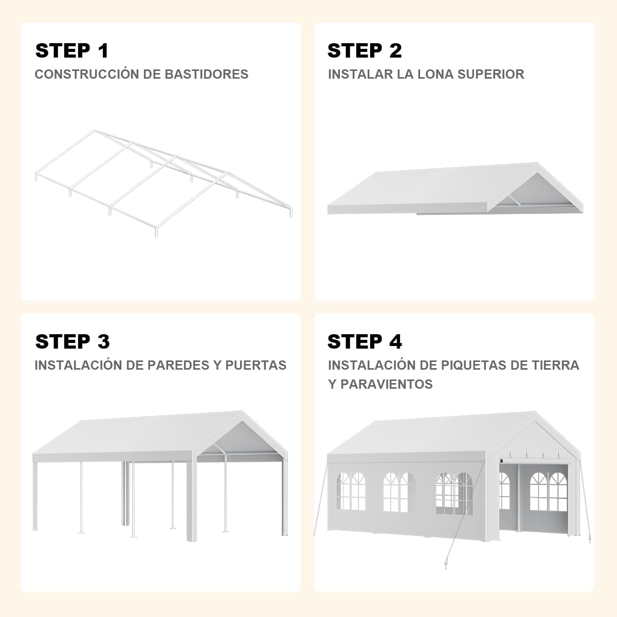 - 【Fácil de ensamblar】 La carpa de dosel GDY 10x10 con paredes laterales se puede configurar en solo 5 minutos sin ninguna herramienta. En cuatro pasos, estire las patas del marco, conecte la parte superior del dosel, presione el botón para ajustar la altura a la altura del dosel preferido y finalmente ate las paredes laterales para una instalación sin problemas.