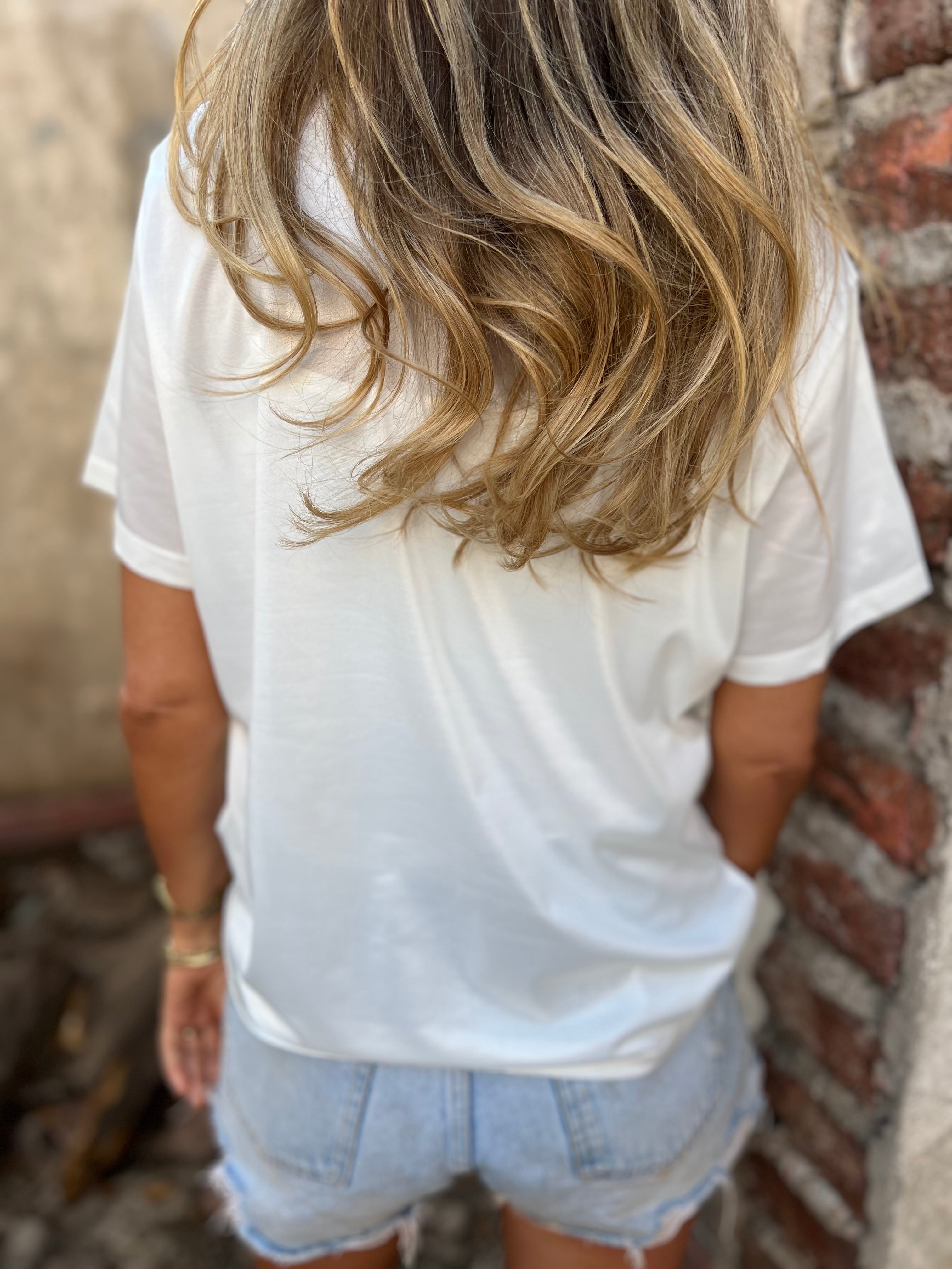 Polera de género metalizado elasticado muy delicado.