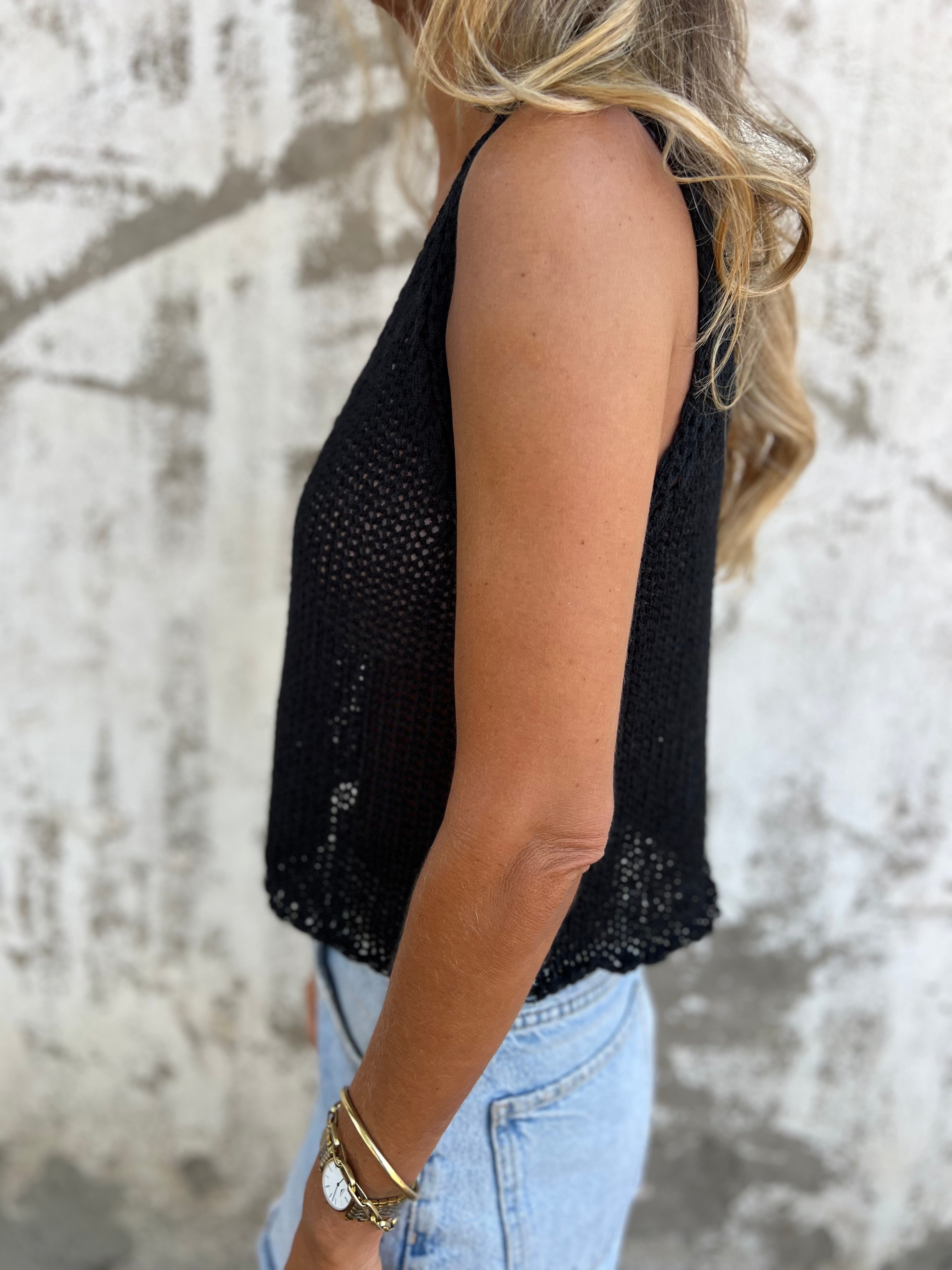 Polera de hilo de algodón elasticado con botones de concha perla.