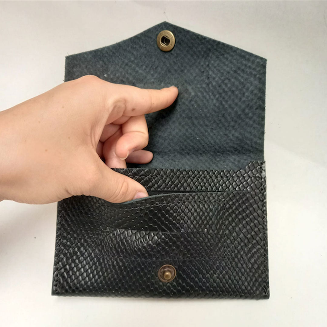 Complementa tu estilo con Tabaquera de cuero negro textura