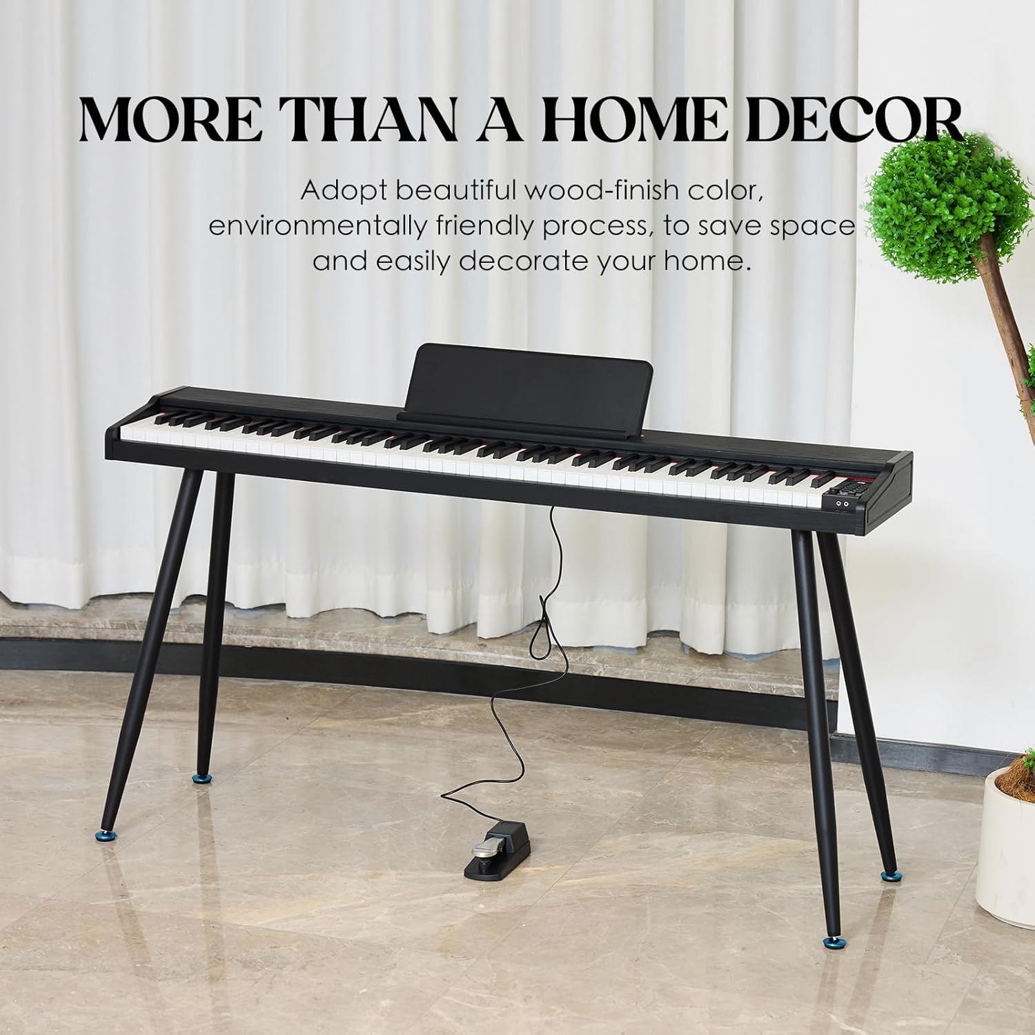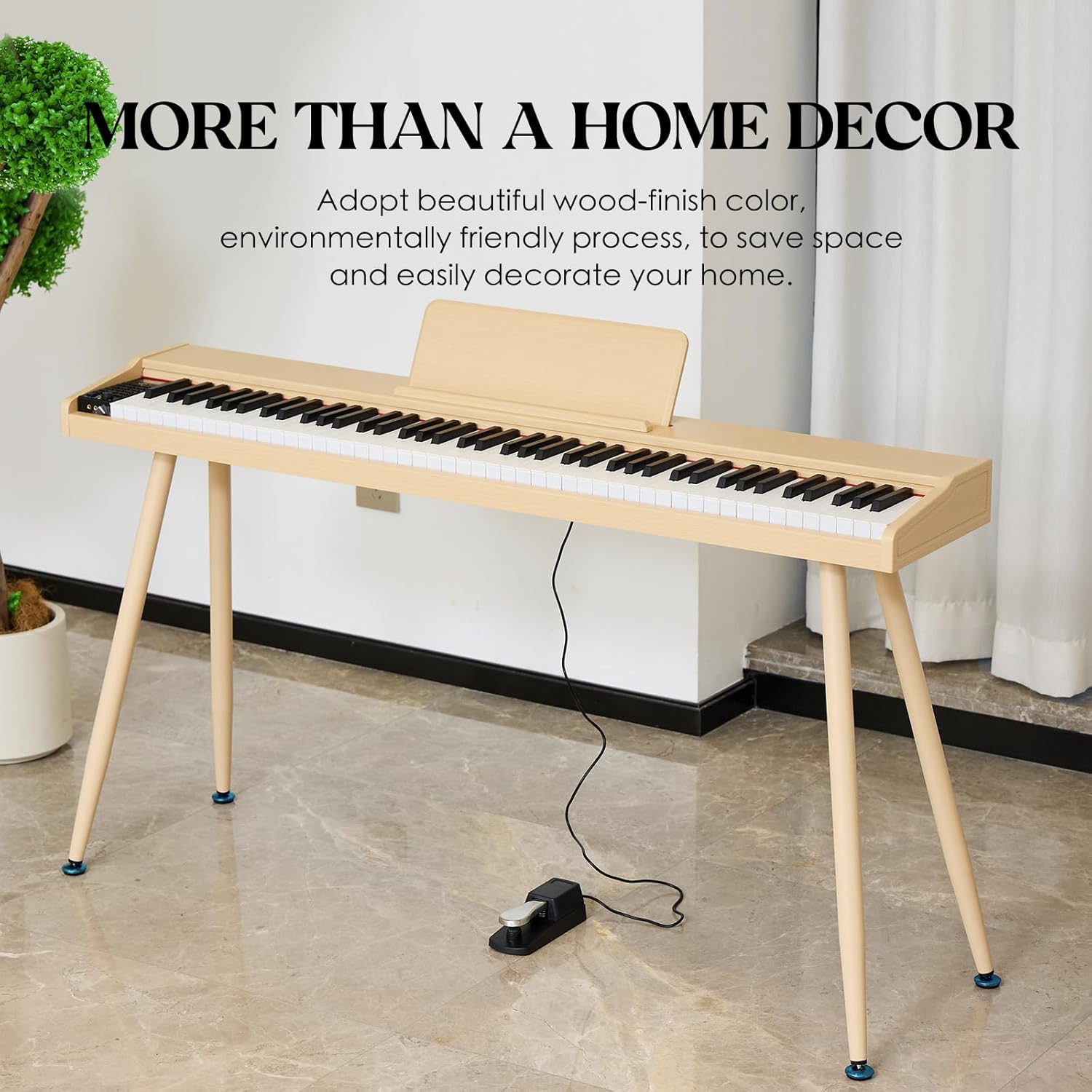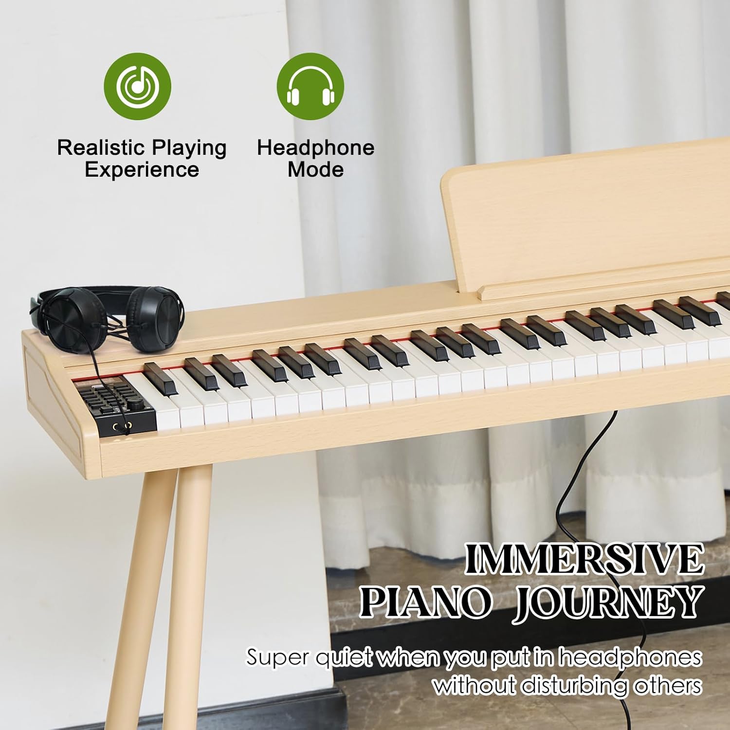 - Aspecto moderno: hermoso acabado de pintura mate, respetuoso con el medio ambiente e inodoro. Elegante piano digital con grano de madera que se adapta a todos los estilos de decoración de tu hogar