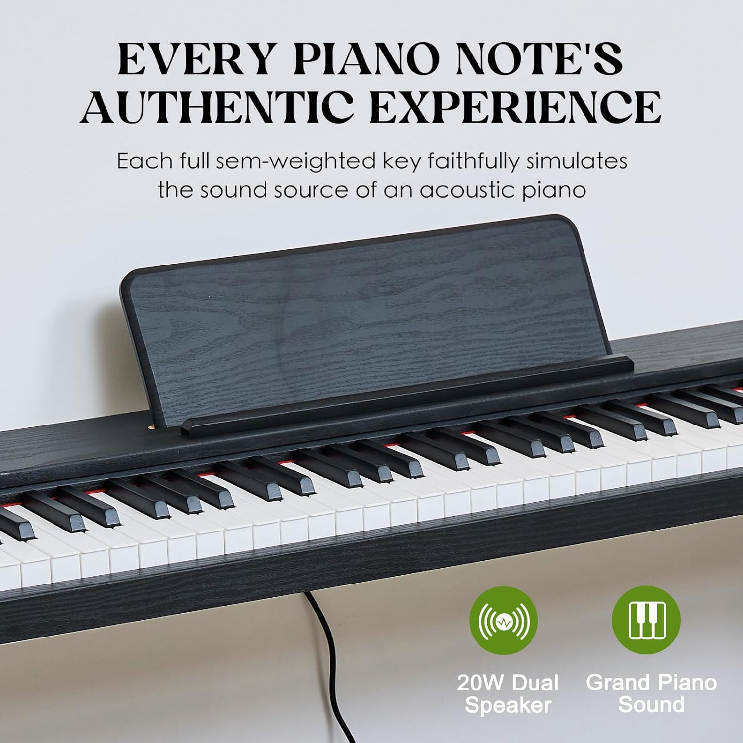 - Teclado semipesado de 88 teclas: el piano de teclado es un teclado de piano de tamaño completo de 88 teclas, teclas semipesadas, perfecto para jugadores que todavía están desarrollando su tacto. Es un buen piano electrónico para reemplazar el piano de cola para enseñar o aprender