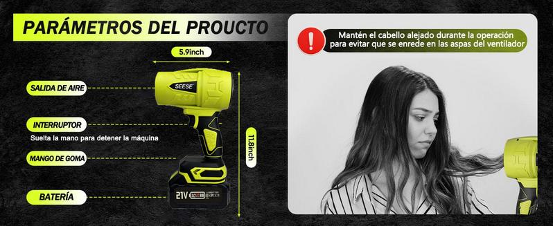 SEESE Soplador Inalámbrico Turbo Jet | Ventilador Turbo de Alta Potencia | Soplador de Nieve de Mano | Motor de Cobre Puro | Para Autos, Hogar, Jardín, Parrilladas y Eliminación de Hojas y Polvo | Regalo Ideal para Festividades