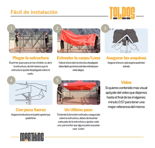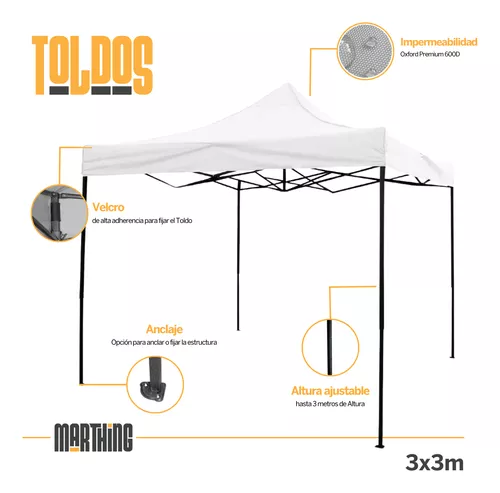La carpa toldo plegable Marthing TE3X3 es perfecta para proteger tus eventos y actividades al aire libre. Con un tamaño de 3x3 metros, lona impermeable y una estructura de acero reforzada, ofrece durabilidad y protección contra el sol y la lluvia. Su diseño plegable y el estuche de transporte incluido facilitan llevarla y guardarla. Es la solución ideal para jardines, ferias, camping y reuniones sociales, combinando calidad y practicidad en un solo producto.