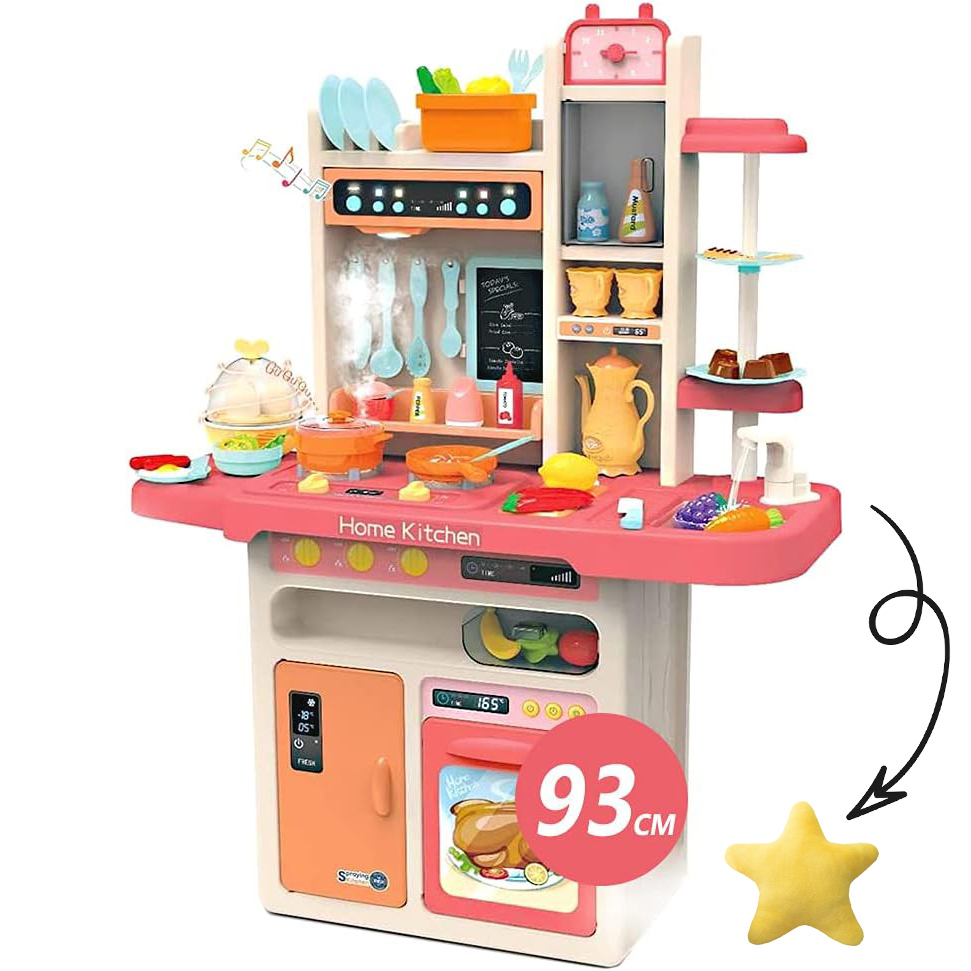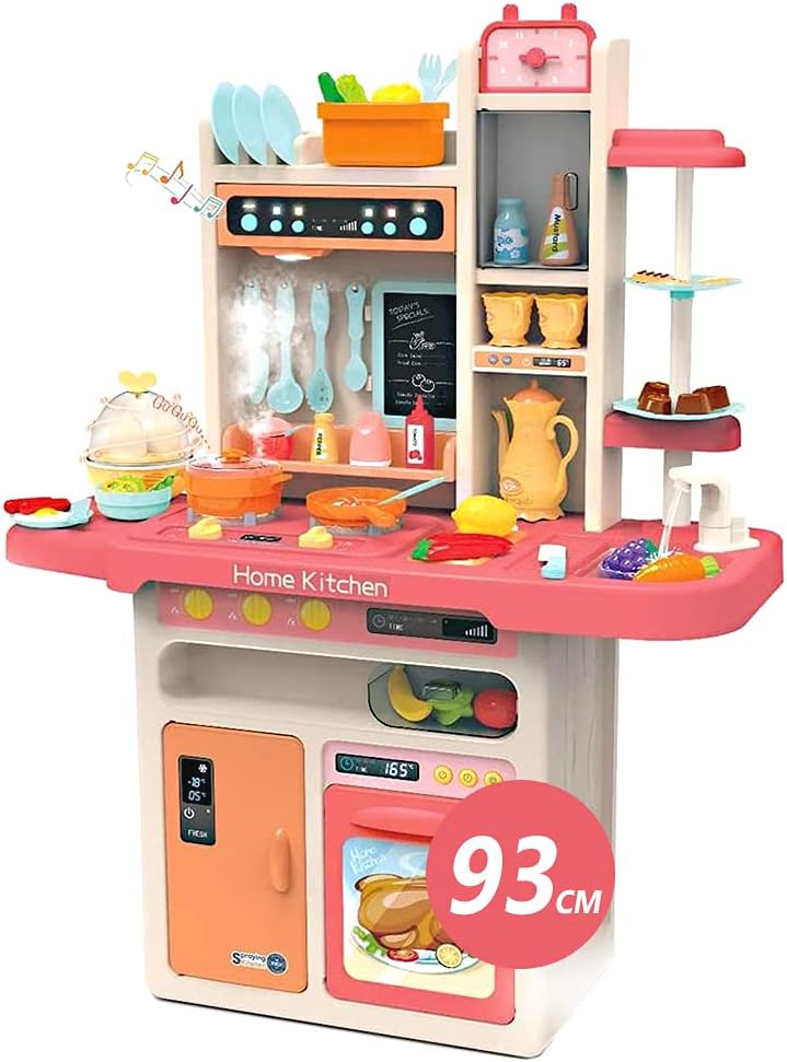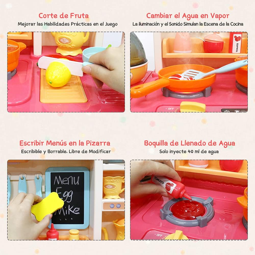 - 【Juguete de cocina para niños】 juego de accesorios de cocina de 65 piezas que incluye estufa electrónica, fregadero de juego con agua corriente, alimentos de juego que cambian de color, estante giratorio para postre, mini pizarra y tipos de accesorios de cocina. Varios utensilios de cocina para que tu pequeño tenga innumerables horas de diversión y juego.
