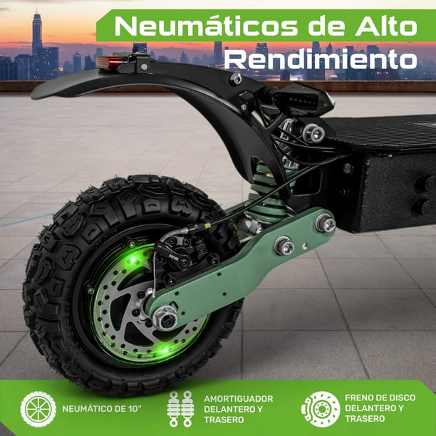 - • POTENCIA ELÉCTRICA DE ALTO RENDIMIENTO Y CONEXIÓN BLUETOOTH. Scooter eléctrico plegable equipado con 2 motores y 3 velocidades, alcanzando una velocidad máxima de 75 km/h para llevarte a donde necesites con rapidez y estilo. Integra bocinas con conexión bluetooth para escuchar la música que más te complazca mientras conduces tu poderoso patín.
