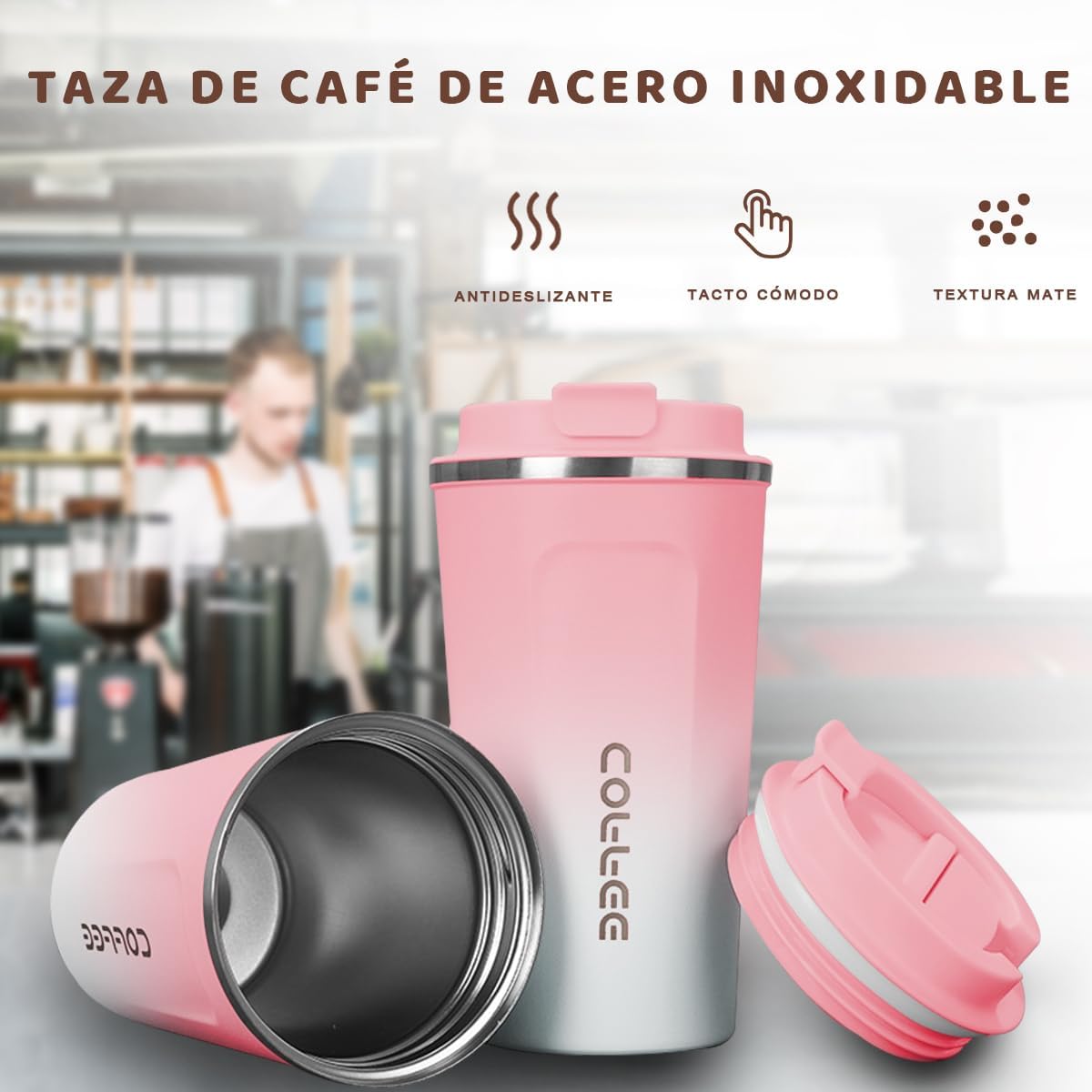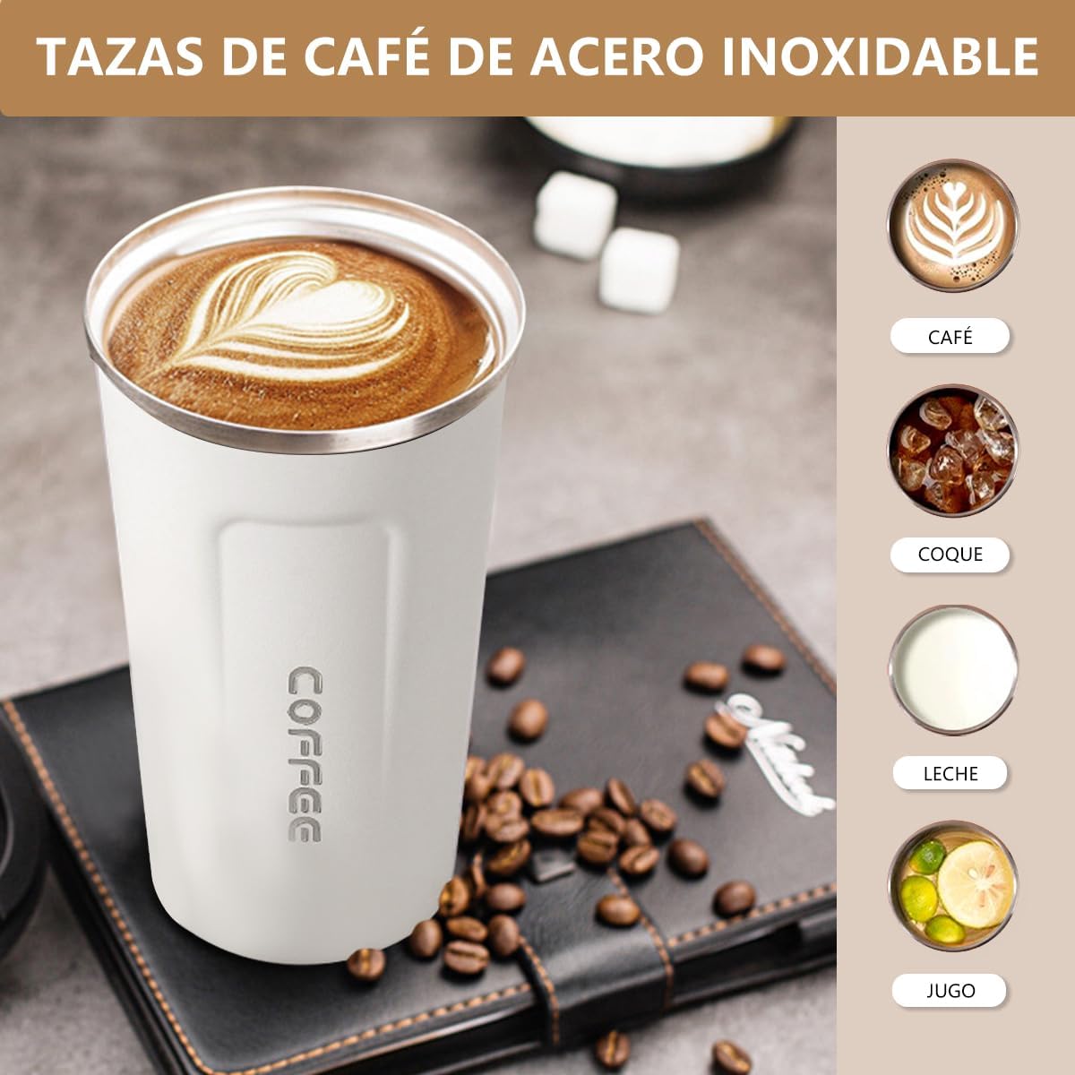MXCOCO Taza Termo de Café de 18 oz/510 ml de Acero Inoxidable 304 con Tapa, Taza de Vacío para Bebidas de Café Frías y Calientes, Vaso Térmico para Café, para la Oficina, el Automóvil y el Parque