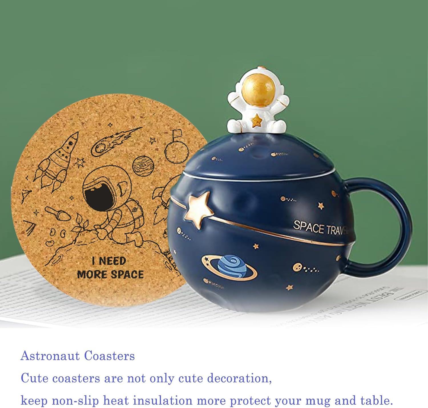 Taza kawaii de astronauta, taza de cerámica, taza de café con tapa y cuchara, té, leche, decoración estética para habitación, regalo divertido de cumpleaños para niñas, niños y mujeres (azul oscuro)