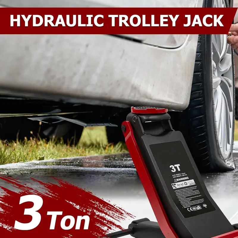Gato de piso de perfil bajo de 4 toneladas, de acero resistente, con doble pistón, bomba rápida, portátil, para ruedas de automóvil