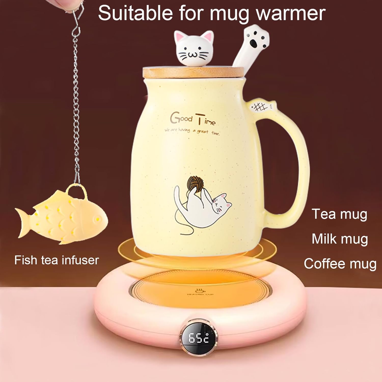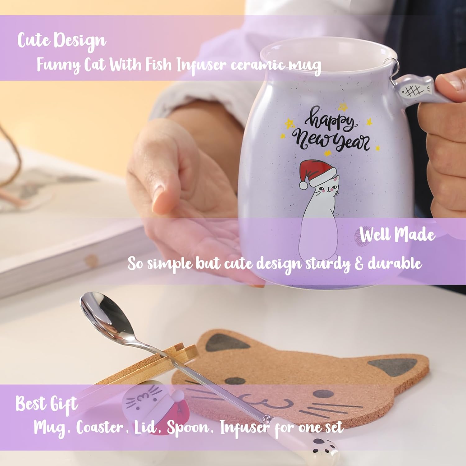 - Decoración para gatos y cosas lindas para gatos: esta taza de té con un diseño exquisito, viene con una cuchara de pata de gato, un bonito posavasos de anime Kitty e infusor de té de pescado. Las tazas de café kawaii para gatos son muy lindas. Esta taza japonesa es una decoración para gatos en el computadora o habitación. Las bonitas tazas de café también son adecuadas para calentar tazas, puedes poner la taza para gatos en el calentador de tazas para mantenerte caliente o calentando. La taza para gatos es un gran regalo para gatos para mujeres.